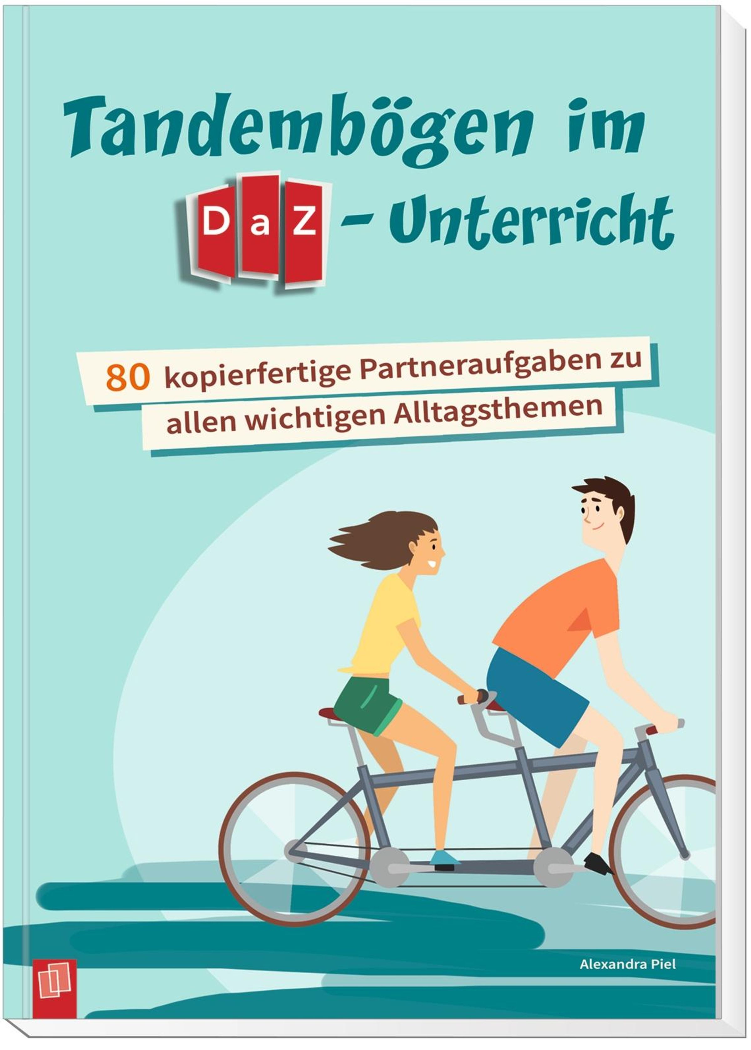Unterrichtsmaterial für Lehrer*innen an weiterführenden Schulen für die Fächer DaZ und DaF, Klasse 5-10 +++ Selbstständig, kommunikativ und abwechslungsreich Deutsch trainieren und das mit möglichst wenig Anleitung seitens der Lehrkraft? Das geht wunderbar mit der Tandem-Methode! Jeweils zwei Schüler*innen arbeiten selbstständig zusammen und erarbeiten sich gemeinsam einen Inhalt. Jede*r verfügt dabei über einen anderen oder den gleichen (An-)Teil der Informationen. Dabei ergänzen sich die Jugendlichen, unterstützen sich gegenseitig und lernen so von- und miteinander anhand alltagsrelevanter Themen. Die nötigen Redemittel und illustrierten Wortschatzhilfen helfen dort, wo die Deutschkenntnisse noch nicht ausreichen, und erweitern das Sprachrepertoire stetig. Die DaZ-Lernenden trainieren Textverständnis, Grammatik und Wortschatz, üben sich in der Kommunikation und im Satzbau. Möglichkeiten der Differenzierung ergeben sich dabei ungezwungen aus den Aufgaben heraus. So gelingt auch mit begrenzten Sprachkenntnissen schülerzentriertes Lernen im DaZ-Unterricht und die Interaktion und Kommunikation zwischen den Jugendlichen wird gefördert.