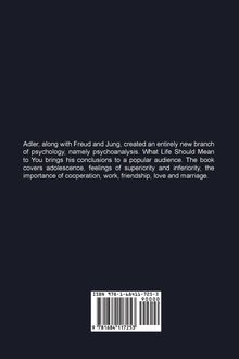 Adler, along with Freud and Jung, created an entirely new branch of psychology, namely psychoanalysis. What Life Should Mean to You brings his conclusions to a popular audience. The book covers adolescence, feelings of superiority and inferiority, the importance of cooperation, work, friendship, love and marriage.