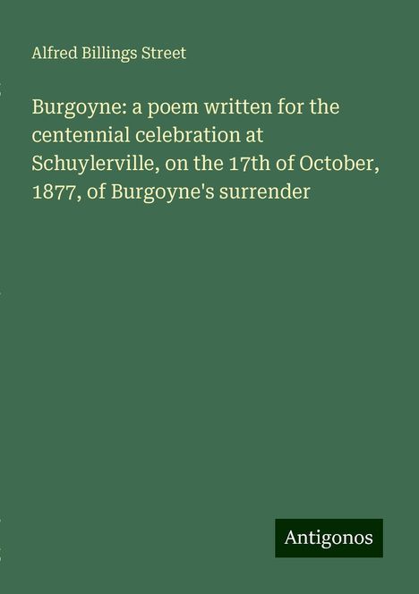 Street, A: Burgoyne: a poem written for the centennial celeb