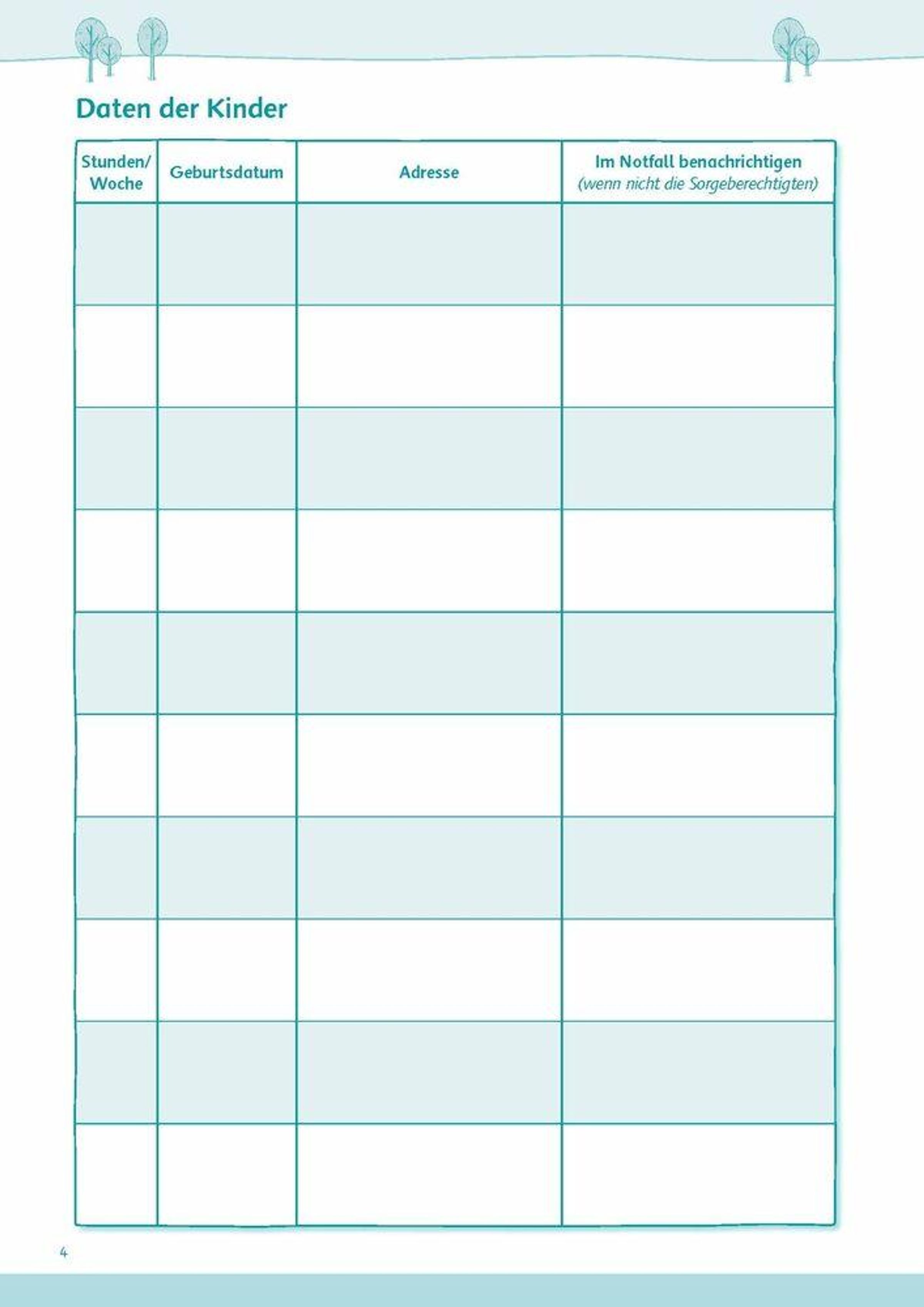 - Alle Daten auf einen Blick: Platz für bis zu zehn Kinder, inklusive Anwesenheitslisten, Essensplänen sowie Geburtstags-Check