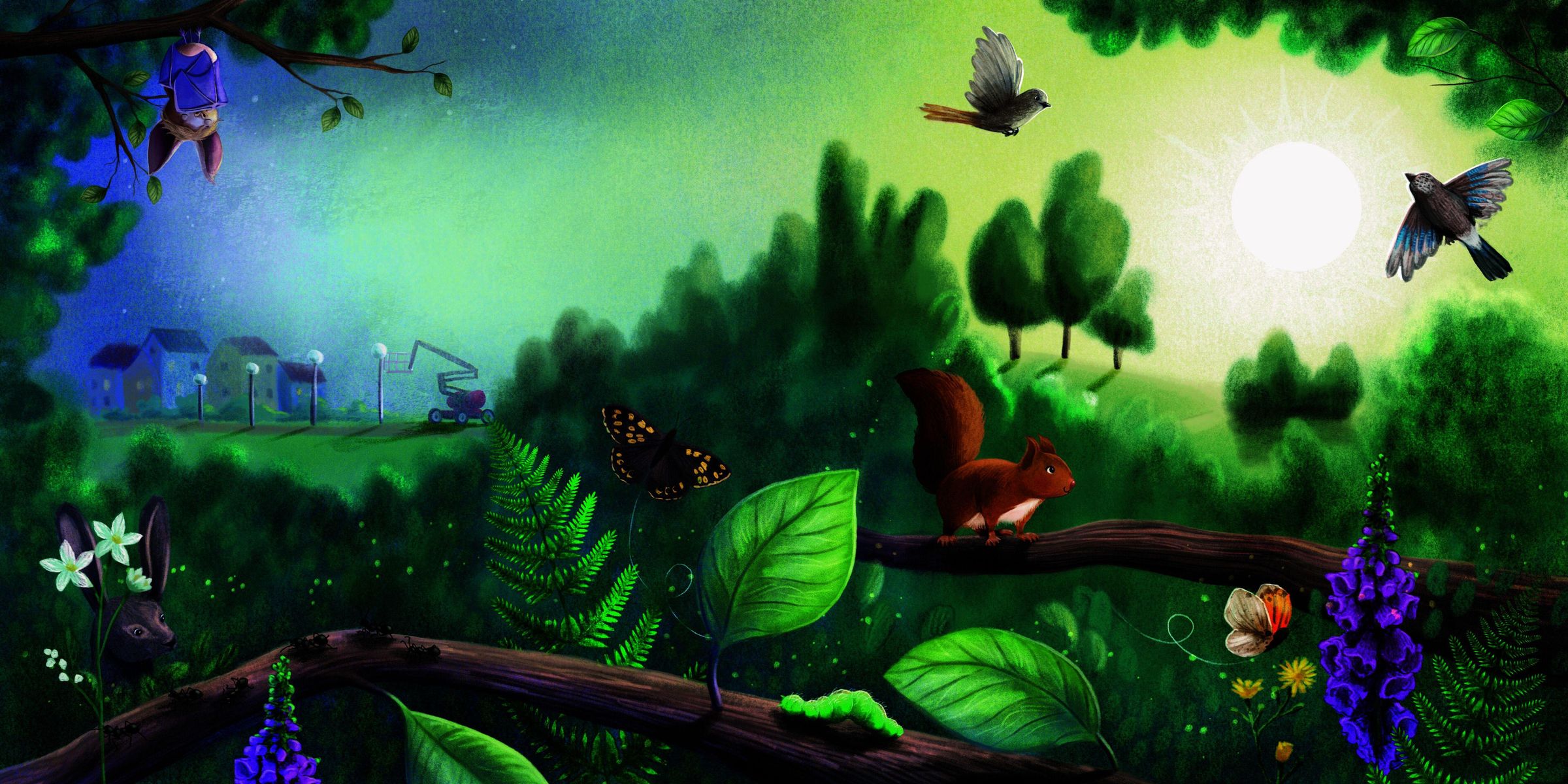 Mit vereinten Kräften versuchen Finn Fledermaus und die anderen Tiere, das ungewohnte grelle Licht im Wald abzuschalten. Doch auch wir Menschen können gemeinsam aktiv werden und unnötige nächtliche Lichtquellen vermeiden.