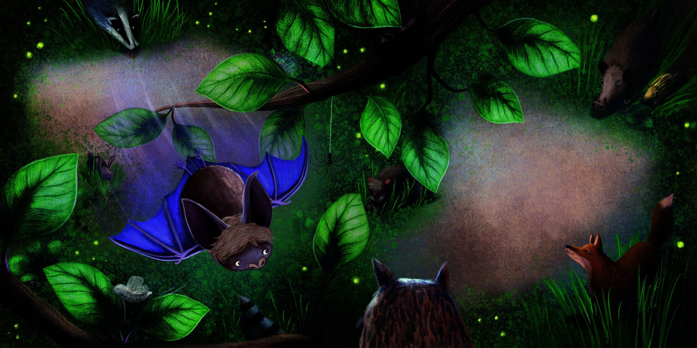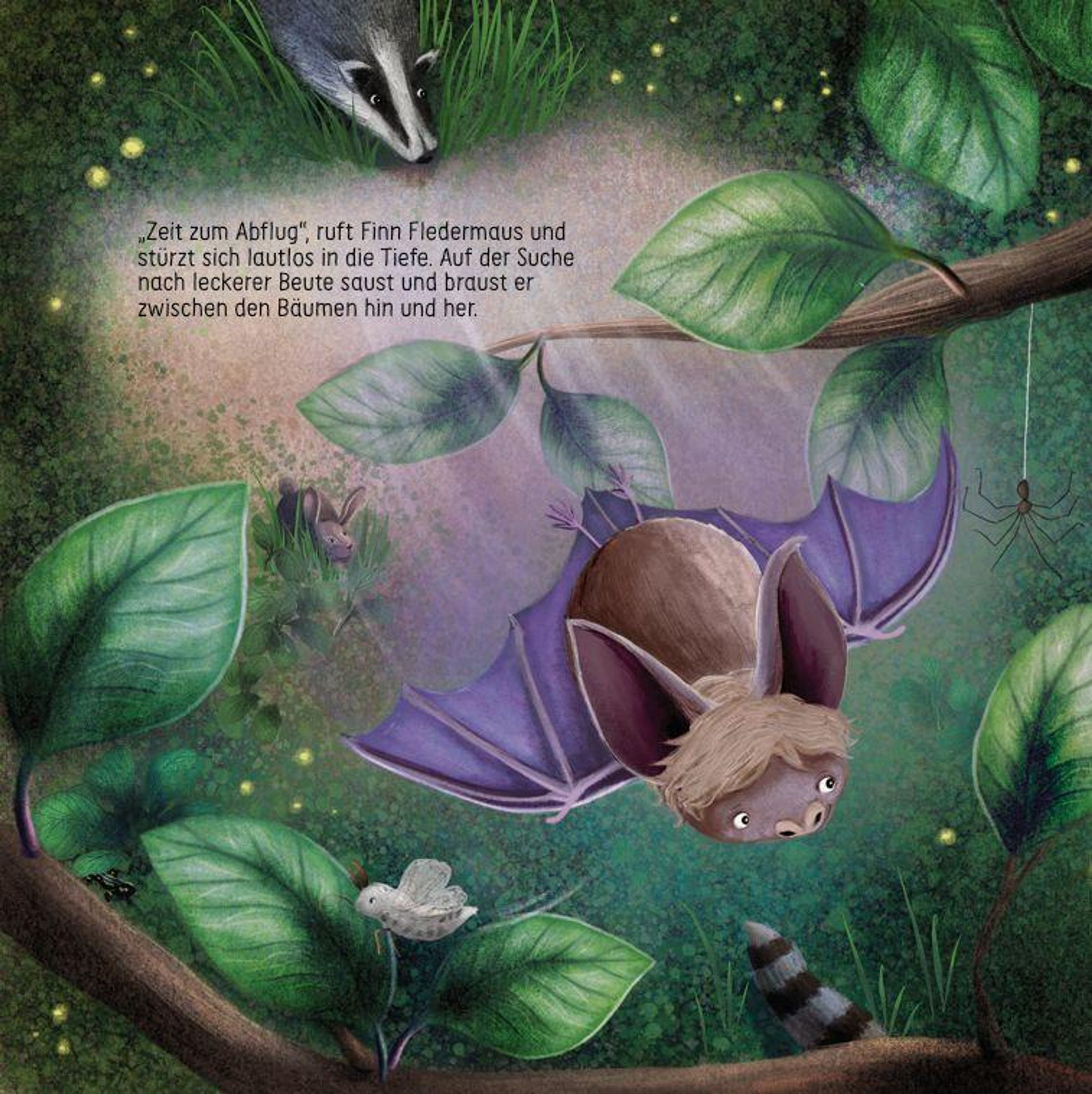 Die Nacht beginnt friedlich für Finn Fledermaus, Frida Fuchs, Guido Glühwürmchen und all die anderen nachtaktiven Tiere im Wald - bis plötzlich ein grelles Licht durch die Bäume strahlt! Schnell laufen alle in heller Aufregung durcheinander, verwirrte Vögel stimmen ihren Morgengesang an und die armen Insekten stürzen sich panisch ins Helle. Finn Fledermaus und seine Freunde versuchen alles, um die Dunkelheit im Wald wiederherzustellen. Wird es ihnen gelingen?