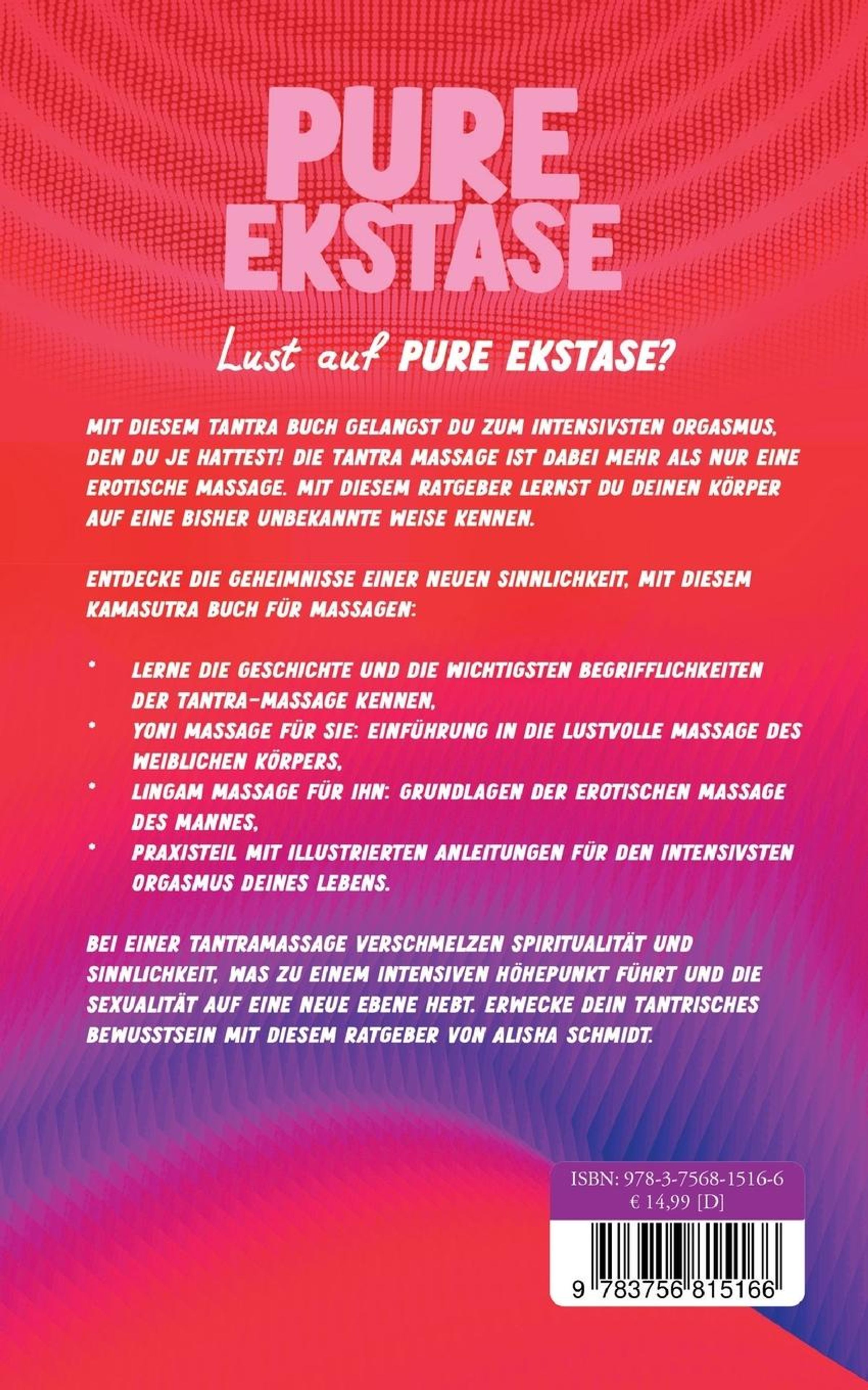Mit diesem Tantra Buch gelangst du zum intensivsten Orgasmus, den du je hattest! Die Tantra Massage ist dabei mehr als nur eine erotische Massage. Bei ihr verschmelzen Spiritualität und Sinnlichkeit, was zu einem intensiven Höhepunkt führt und die Sexualität auf eine neue Ebene hebt. Ihr werdet eure Körper dabei auf eine bisher unbekannte Weise kennen lernen.