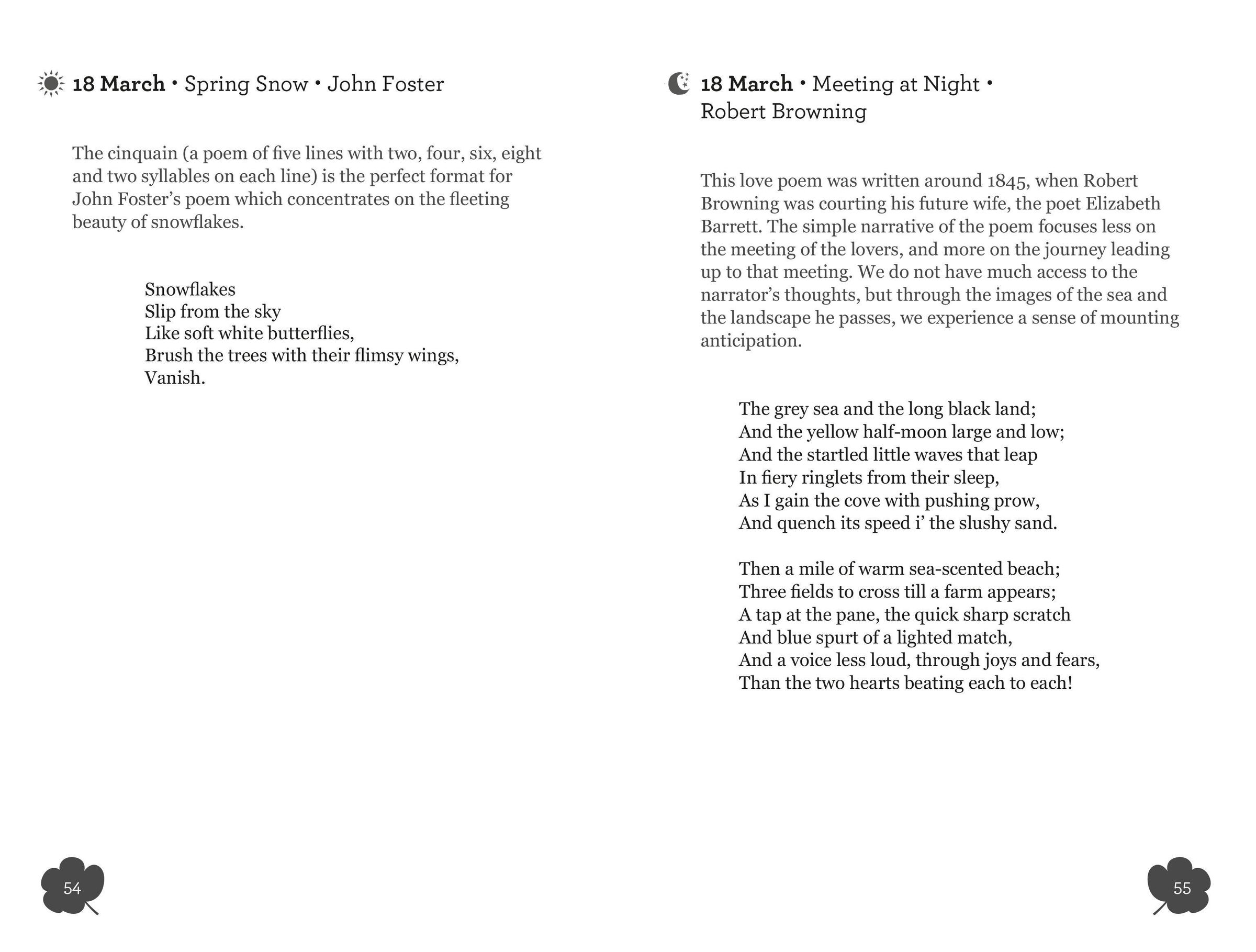 This soul-enhancing book will keep you company for every day and night of the Spring. Enjoy more seasonal poetry collections with A Poem for Every Summer Day and A Poem for Every Autumn Day.