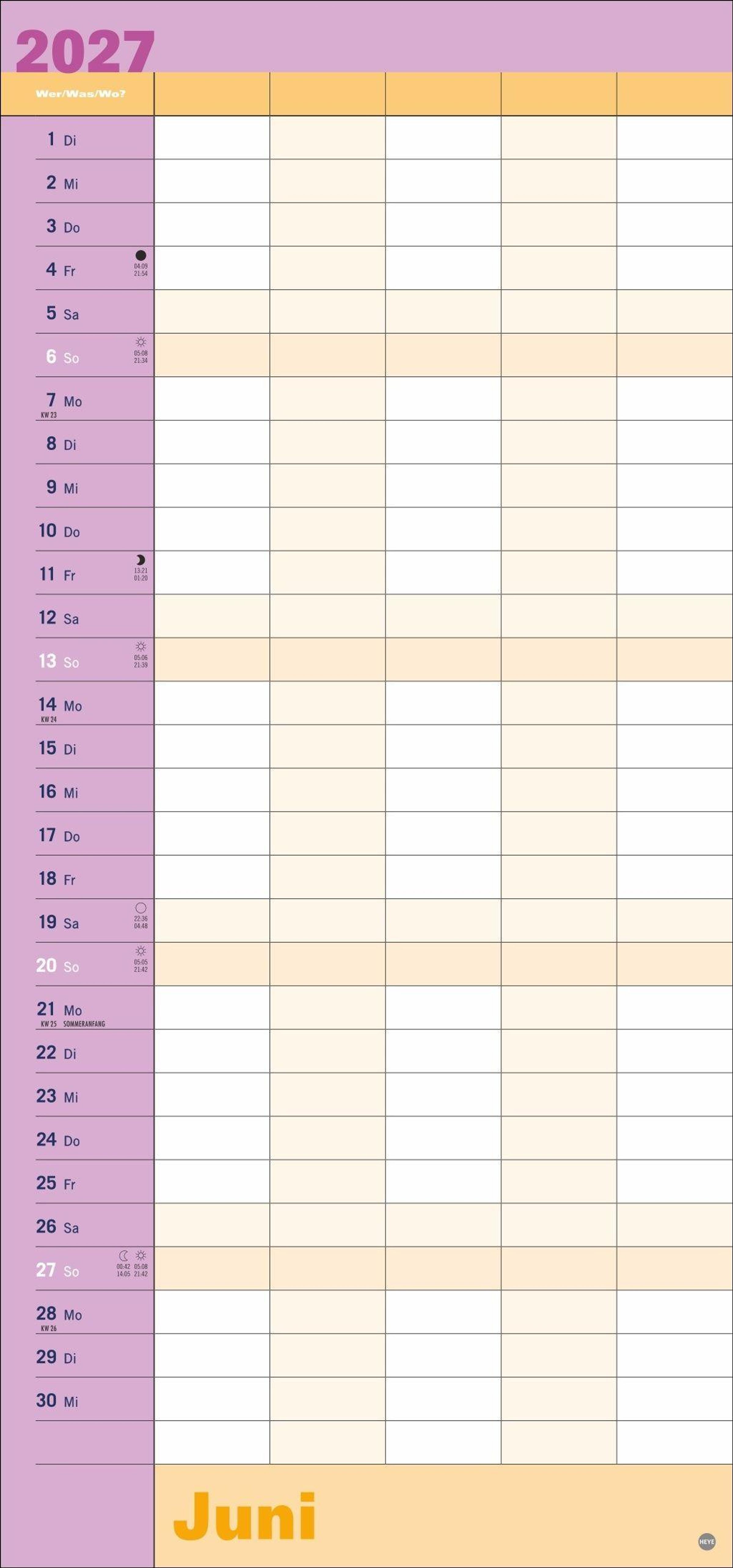 Unser erfolgreiches Konzept für Familienplaner: 5 Spalten mit ausreichend Platz für alle im Haus, im bewährten 21 x 45 cm-Format