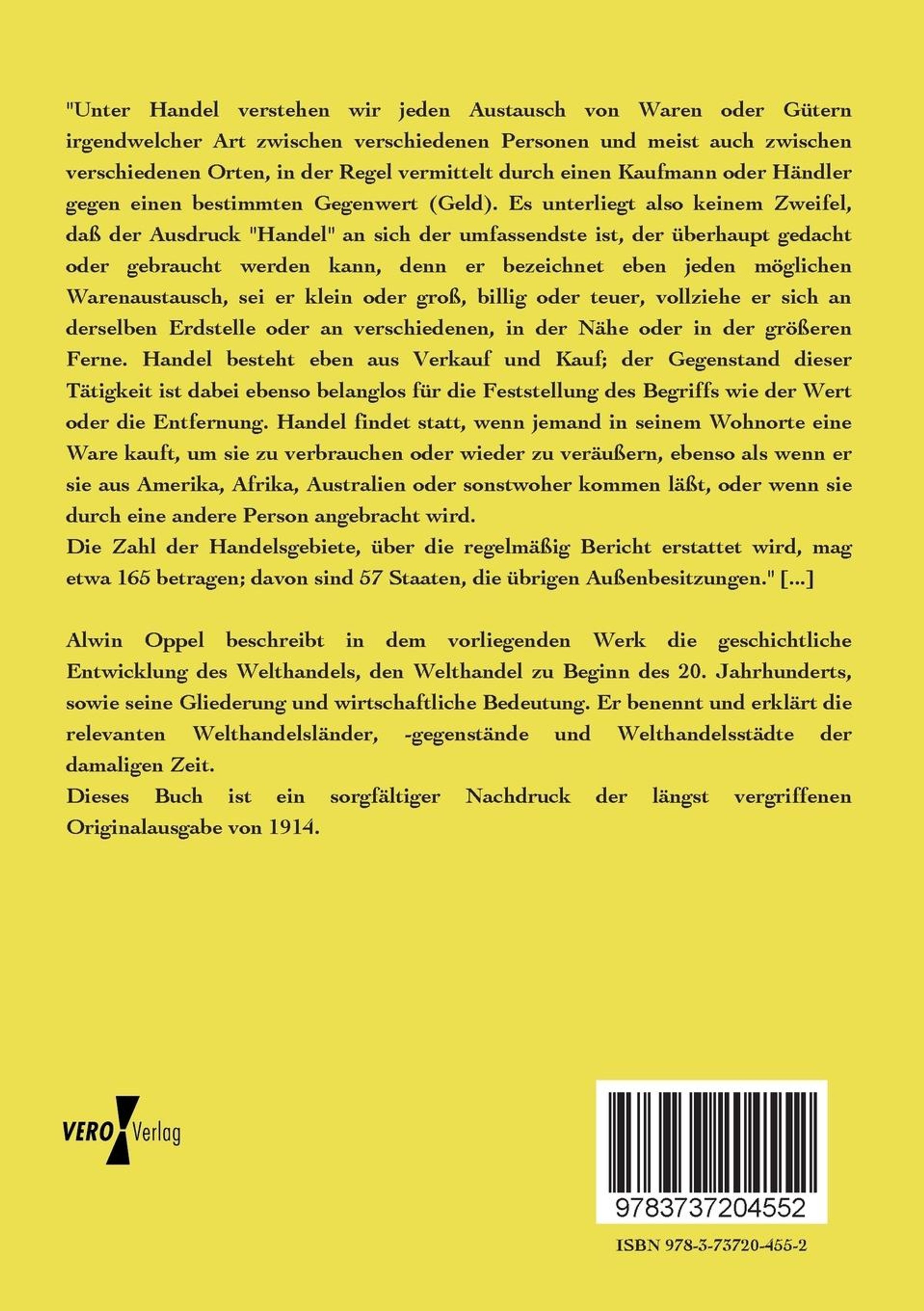 Alwin Oppel: Der Welthandel, seine Entwicklung und gegenwärtige Gestaltung, Kartoniert / Broschiert