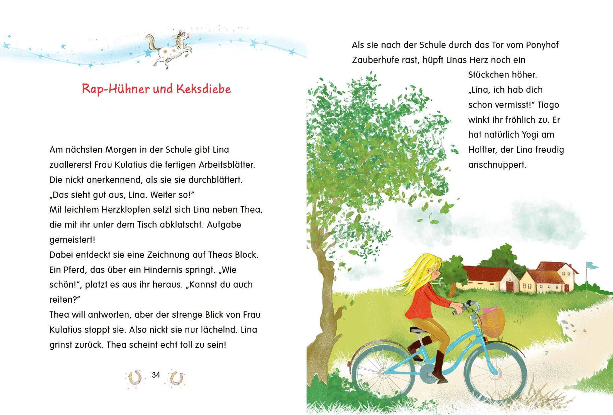 Am allerliebsten ist Lina auf dem Ponyhof! Bei Kaspar, dem frechsten und lustigsten Islandpferd der Welt. Zusammen sind sie >>Team Zauberhufe<<. Denn seit Kaspar mit den magischen Hufeisen beschlagen wurde, kann Lina mit ihm sprechen. Ist das nicht unglaublich? Wie schön wäre es, wenn auch ihr bester Freund Tiago sein Pony besser verstehen könnte! Dann würden sie alle vier zusammen das Reitabzeichen machen. Doch bevor die große Prüfung stattfindet, galoppiert Kaspar mal wieder mitten ins Chaos. Ob Lina es wohl schafft, ihn da wieder rauszuführen?
