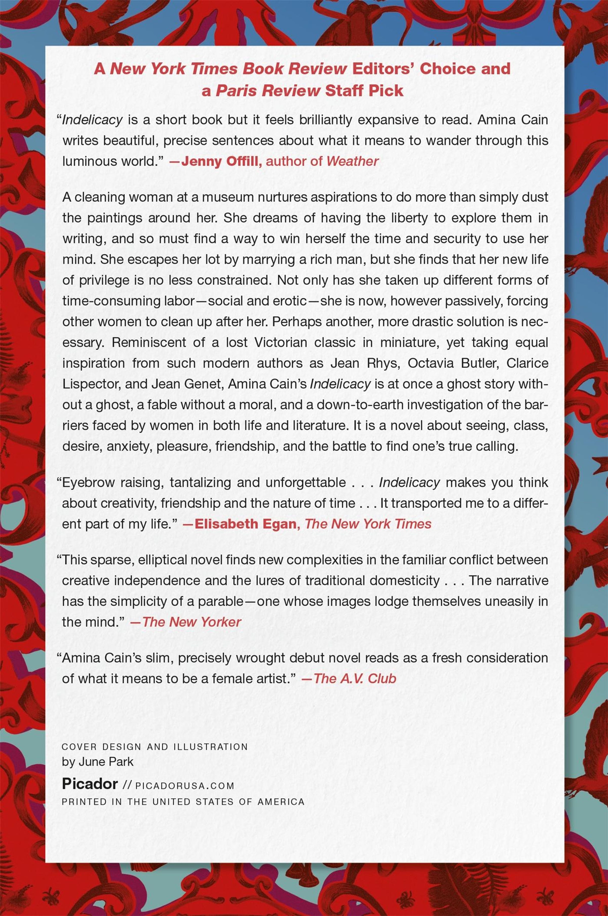 Reminiscent of a lost Victorian classic in miniature, yet taking equal inspiration from such modern authors as Jean Rhys, Octavia Butler, Clarice Lispector, and Jean Genet, Amina Cain's Indelicacy is at once a ghost story without a ghost, a fable without a moral, and a down-to-earth investigation of the barriers faced by women in both life and literature. It is a novel about seeing, class, desire, anxiety, pleasure, friendship, and the battle to find one's true calling.
