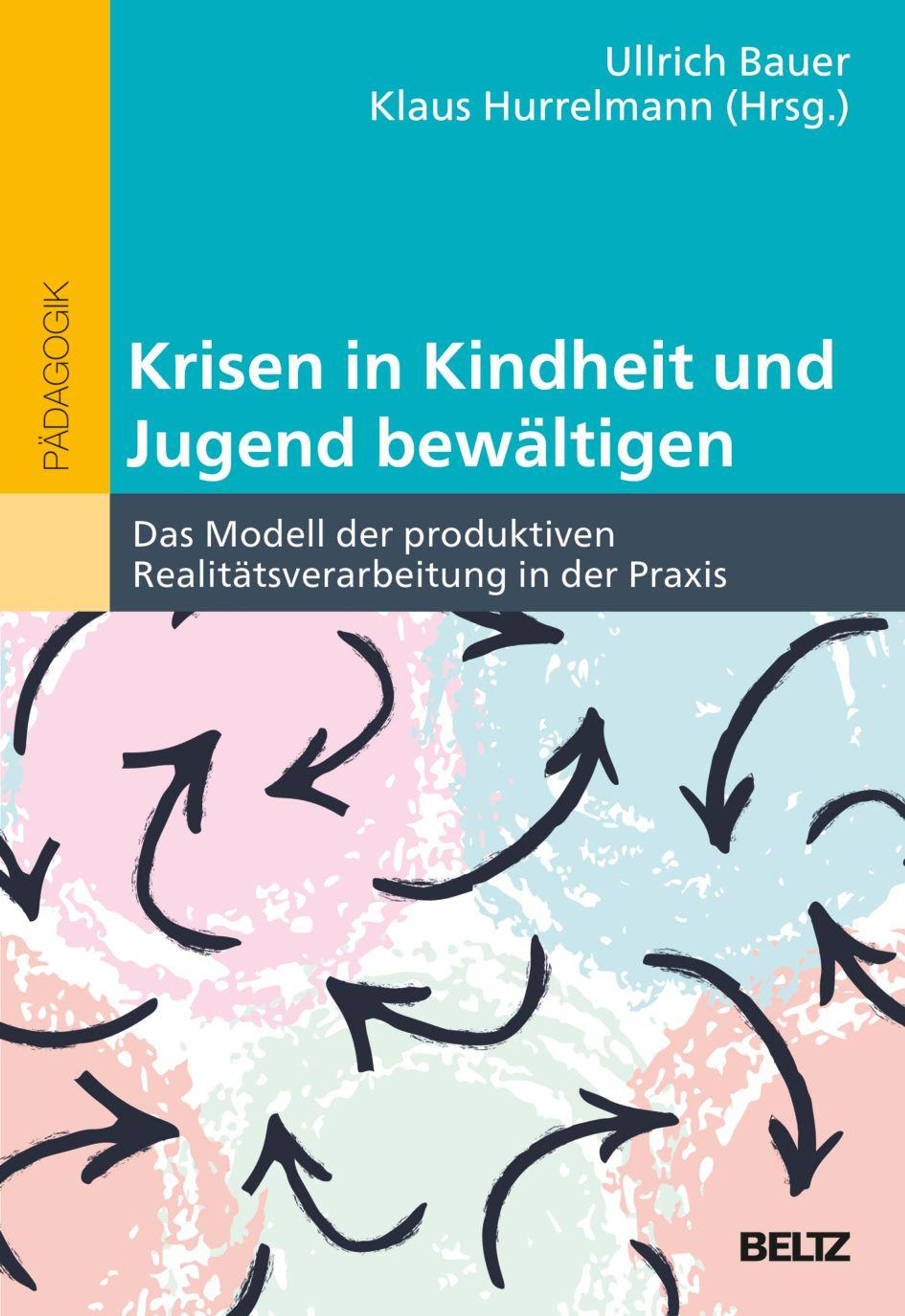 Text: "Krisen in Kindheit und Jugend bewältigen." Darunter bunte Pfeile auf pastellfarbenen Hintergrund., Buch
