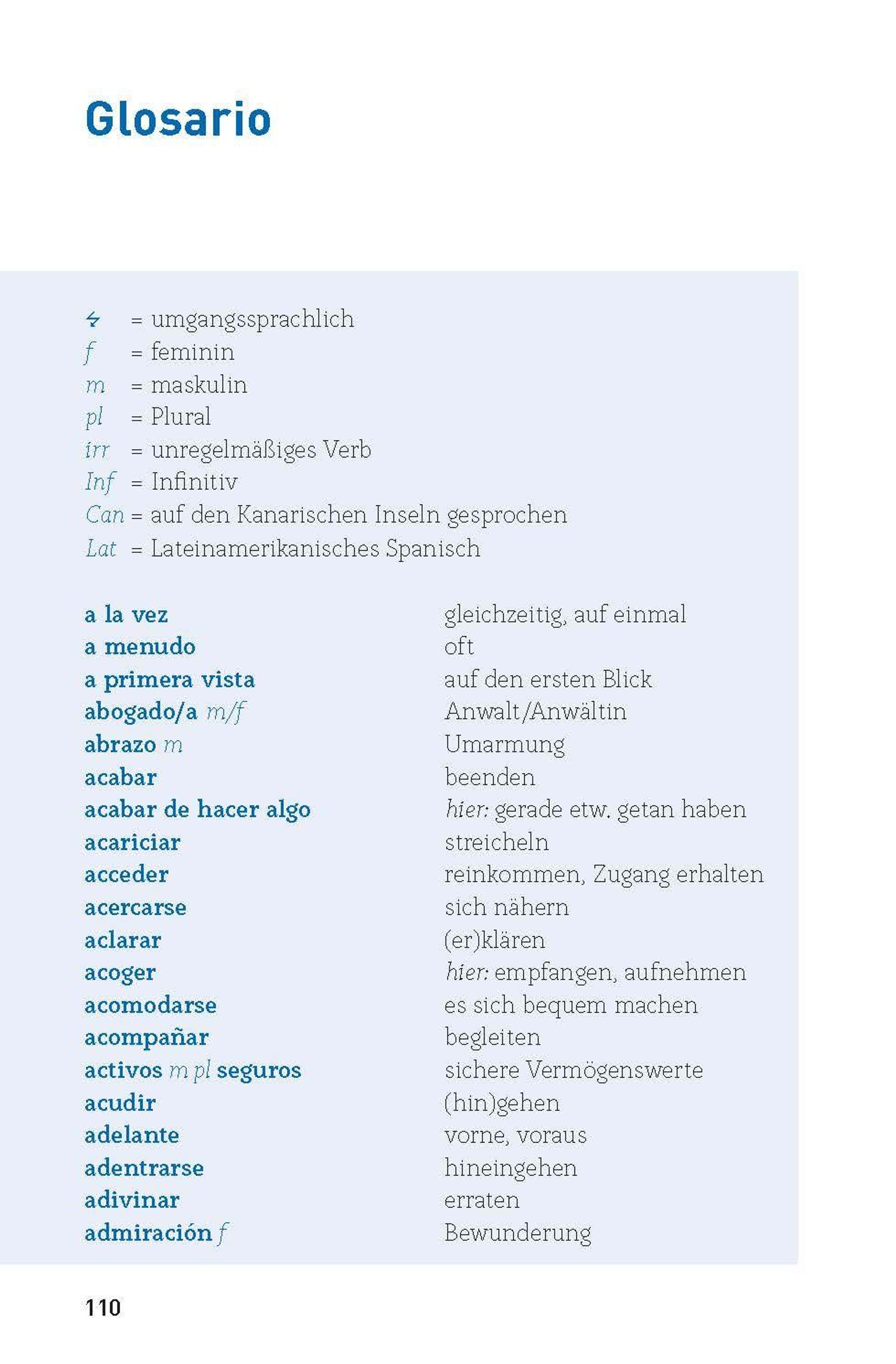- Umfangreiches Glossar: Das alphabetische Glossar am Ende des Buches ermöglicht es, sämtliche im Text markierte Vokabeln nachzuschlagen.