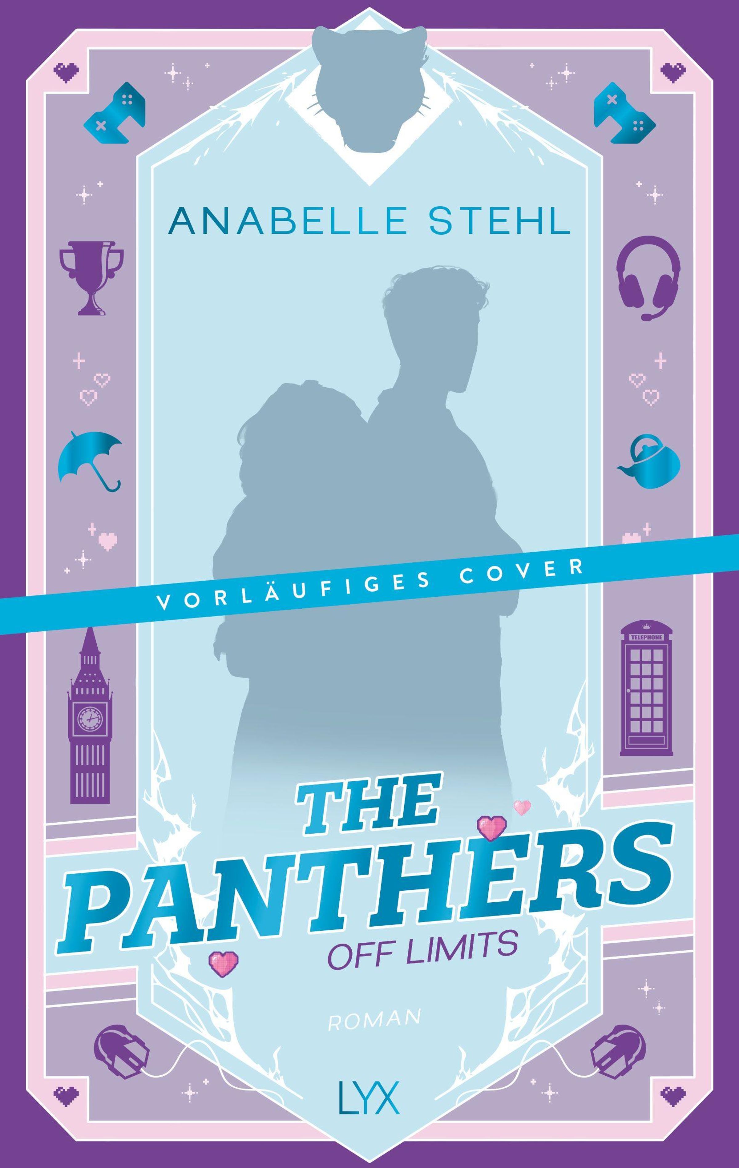 „Anabelle Stehl, Vorläufiges Cover, The Panthers Off Limits, Roman, LYX“ auf lila Hintergrund mit Silhouette., Buch