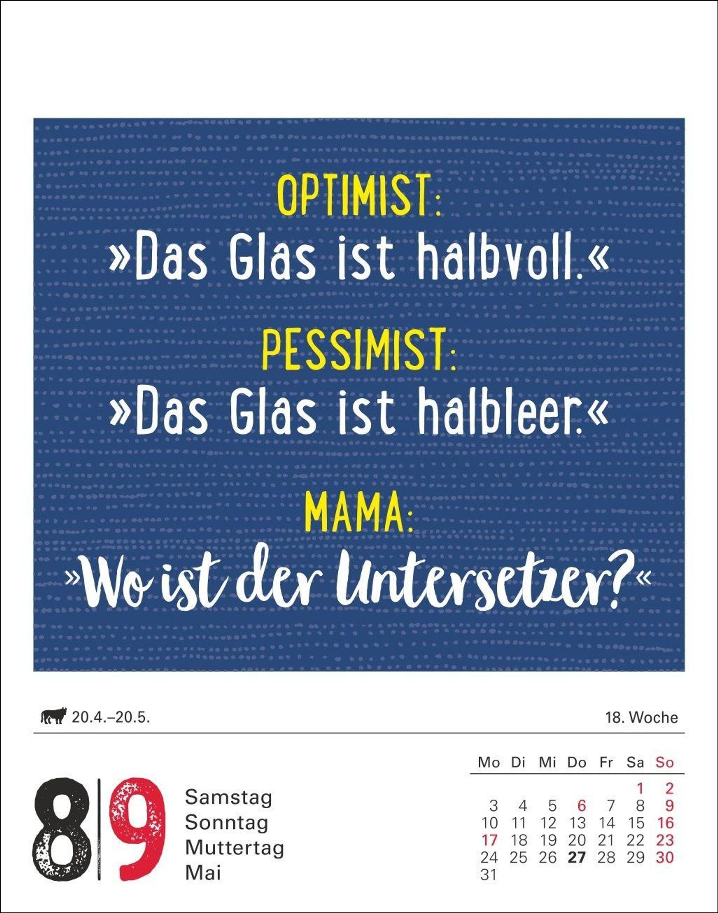 - Lustiger Tageskalender mit originellen Sprüchen. Humorvoller Tischkalender 2027 mit Lebensmottos. Kalender mit witzigen Weisheiten