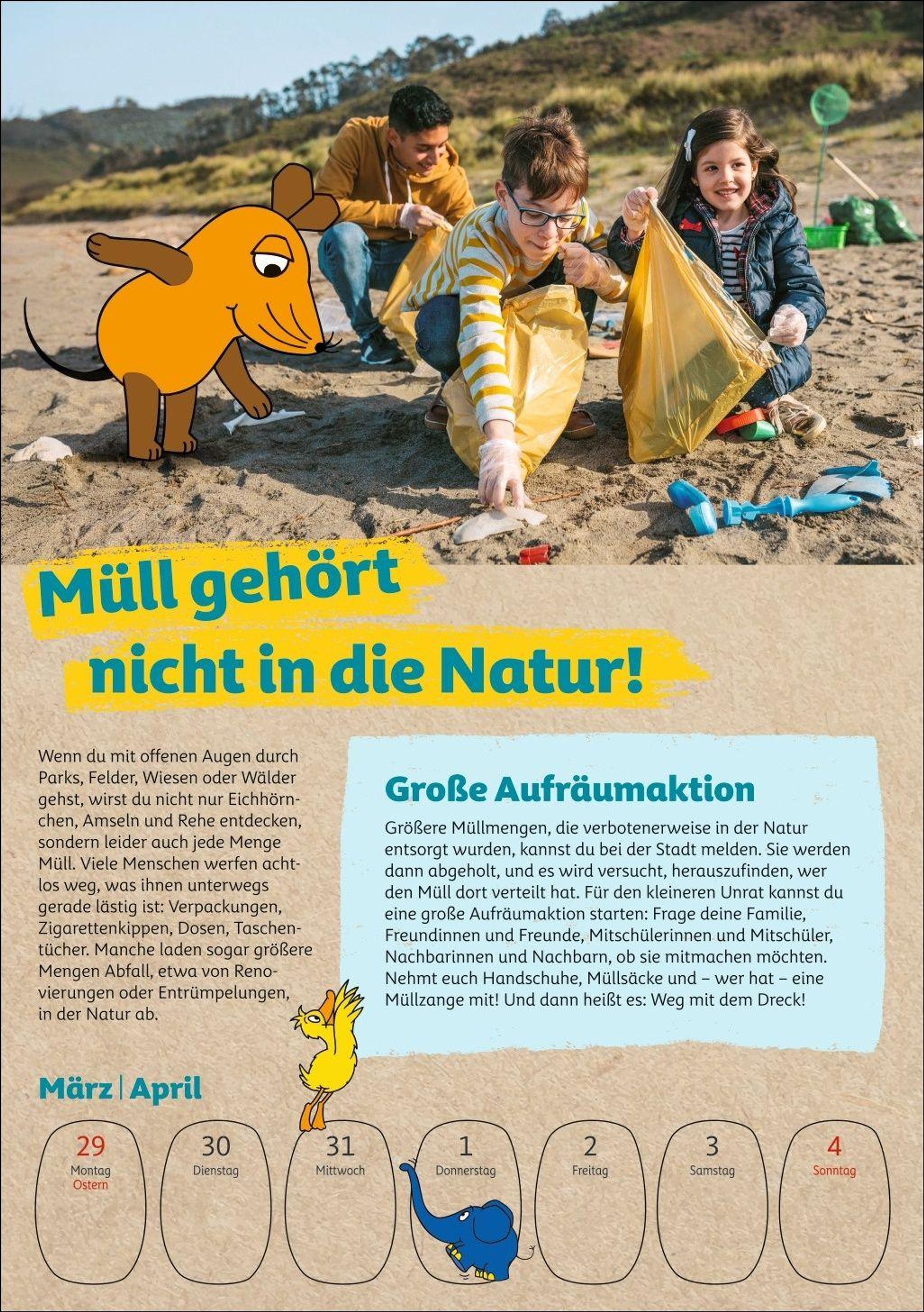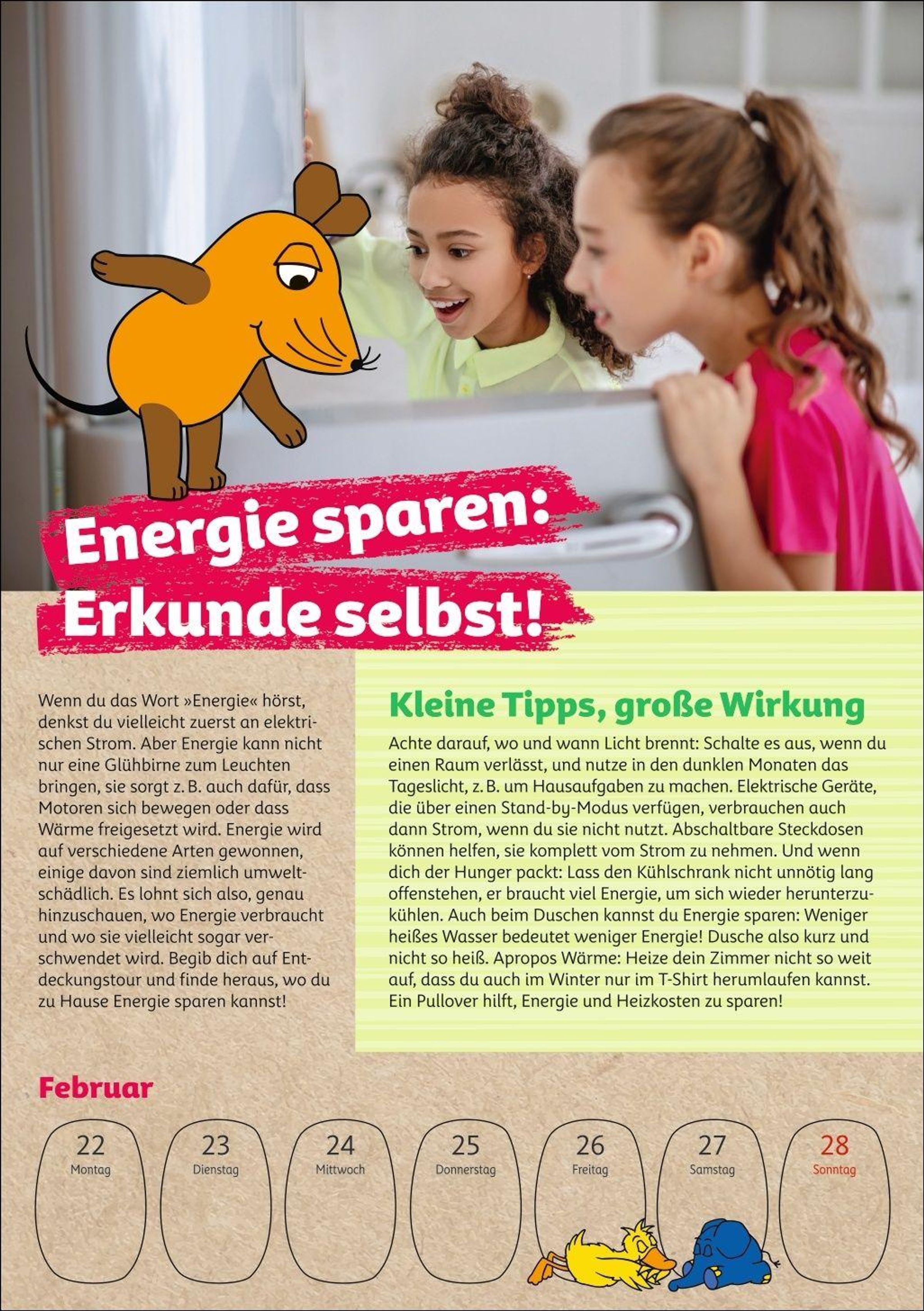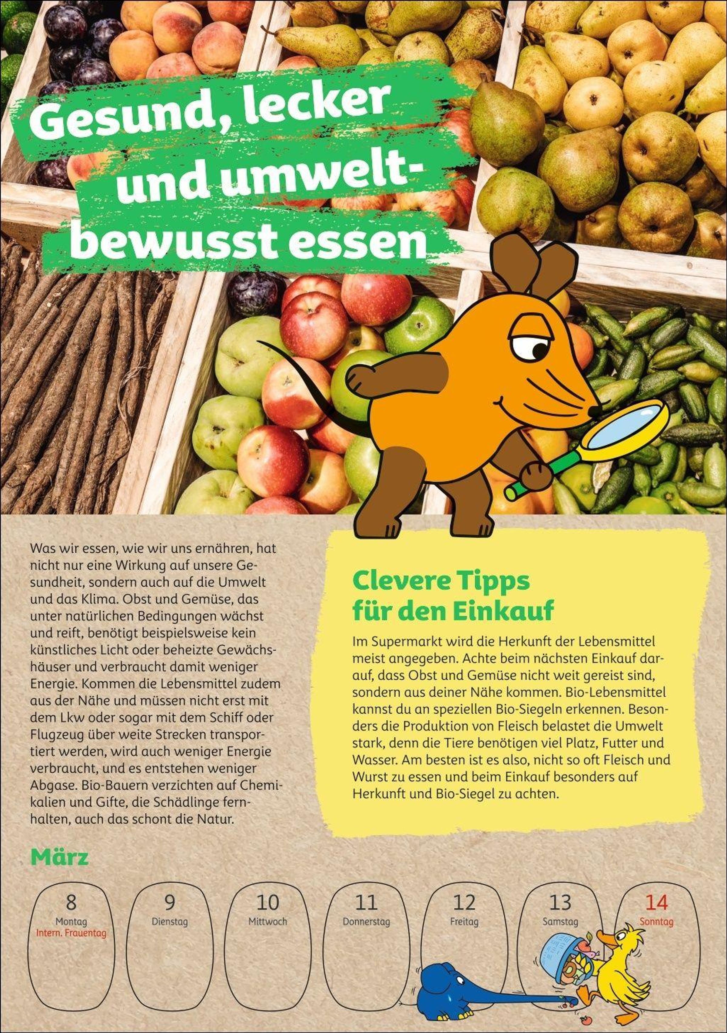 Umweltbildung ab 6 Jahren im Wochenplaner: kindgerecht präsentiert von der Maus, bekannt aus den Lach- und Sachgeschichten