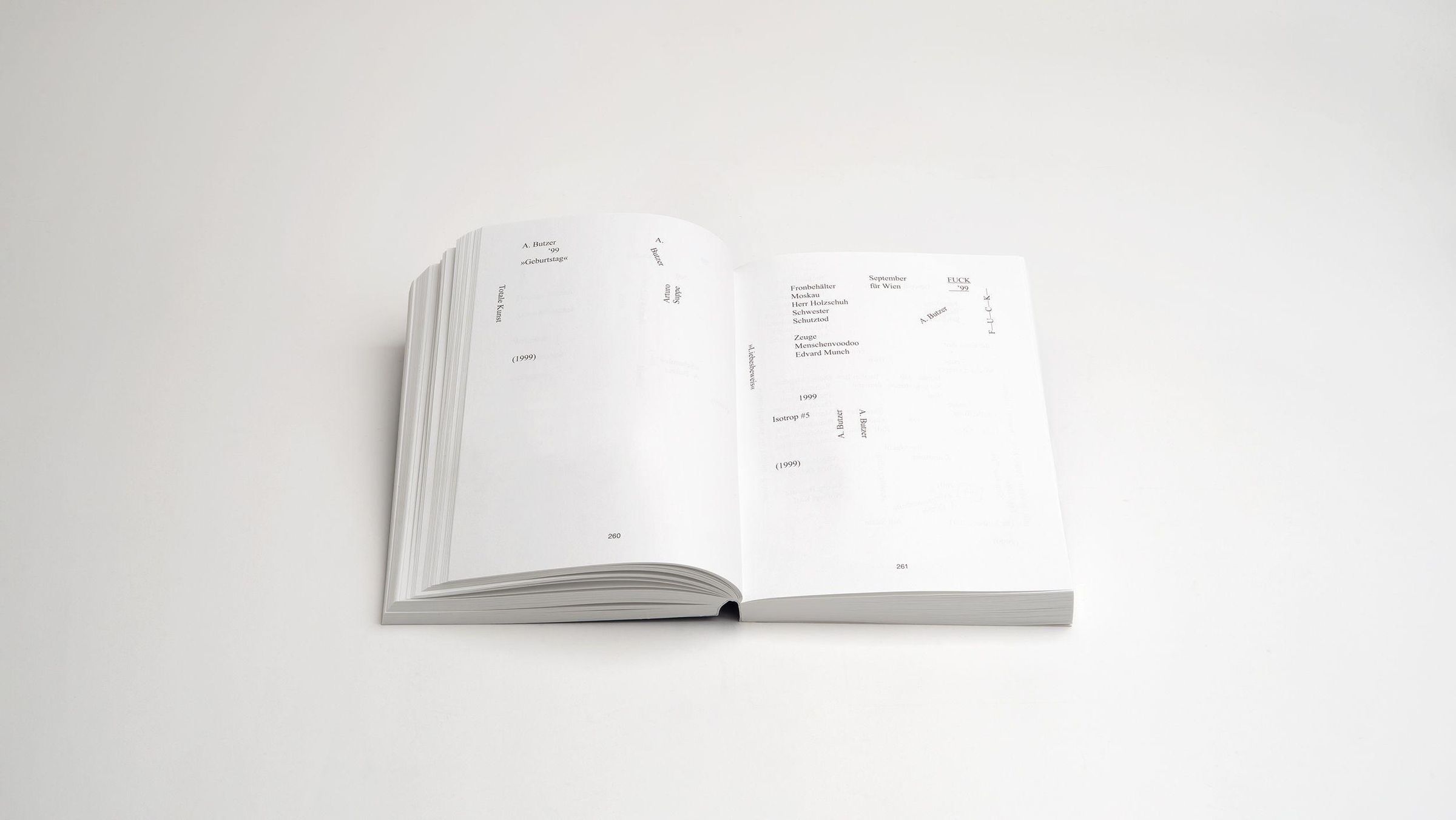André Butzer (geb. 1973, lebt in Berlin) ist für seine provokante pop-expressionistische Malerei bekannt, die sich den großen gesellschaftlichen Widersprüchen unserer Zeit widmet. Versatzstücke von u. a. Comics, Disney und Kunstgeschichte gehen gleichberechtigt in seine farblich und energetisch intensiven Bilder ein. Butzer is ebenso eloquent in Worten und dieser Band, der vierte in einer Reihe, schöpft aus dem stetig wachsenden Archiv des Künstlers. Für das neue Buch arbeitet sich Butzers langjähriger Lektor Alexander Linn über fünf Jahre durch zahllose Dokumente und sah alle Publikationen aus dieser Zeit ein. Das Resultat ist eine wertvolles Quellenwerk mit Texten, Interviews, Briefen und Gedichten, sowie einem Transkript des Films André Butzer, Seine Kunst und Seine Zeit von 2023.