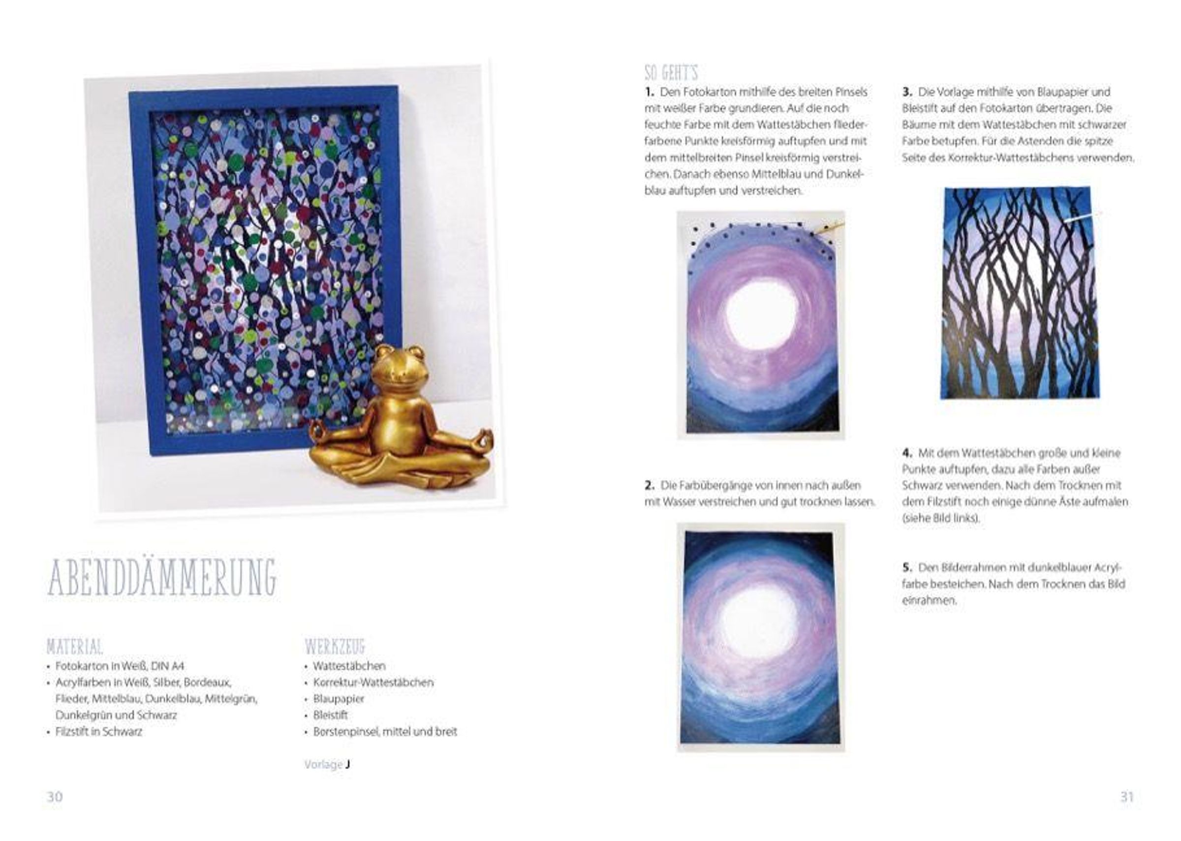 Es muss nicht immer ein Pinsel sein! Denn auch mit Wattestäbchen, die ja meist schon im Haushalt vorhanden sind, kann man malen. Dabei werden Wasserfarben aus dem Schulmalkasten oder auch Acrylfarben Punkt für Punkt aufgetupft zu schönen Motiven. Bemalt wird Papier, aber auch Steine können bunt gestaltet werden. Mit den Vorlagen im Buch geht das ganz einfach. Und so entstehen tolle Bilder, Karten, Dekosteine, Schachteln und Laternen.