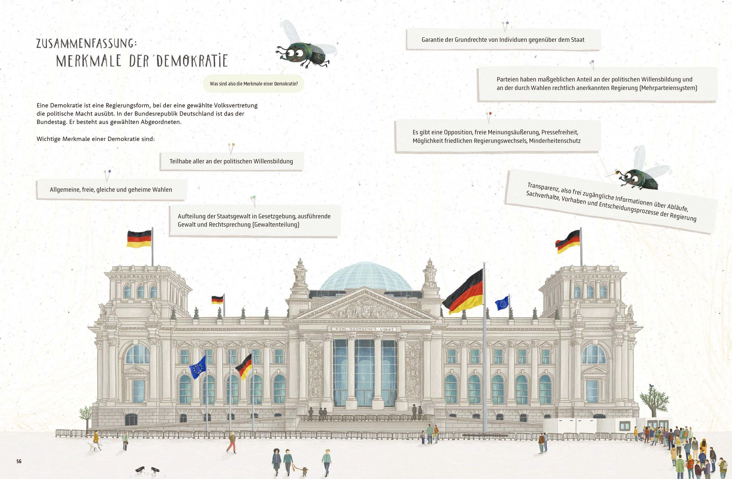 Dieses Sachbuch erklärt einfach und verständlich , wie Demokratie und Politik in Deutschland funktionieren, und wieso das Reichstagsgebäude so wichtig für all diese Fragen ist. Das komplexe Thema wird kindgerecht und anschaulich aufbereitet und hält auch für Eltern und Wissensvermittelnde spannende Informationen bereit.