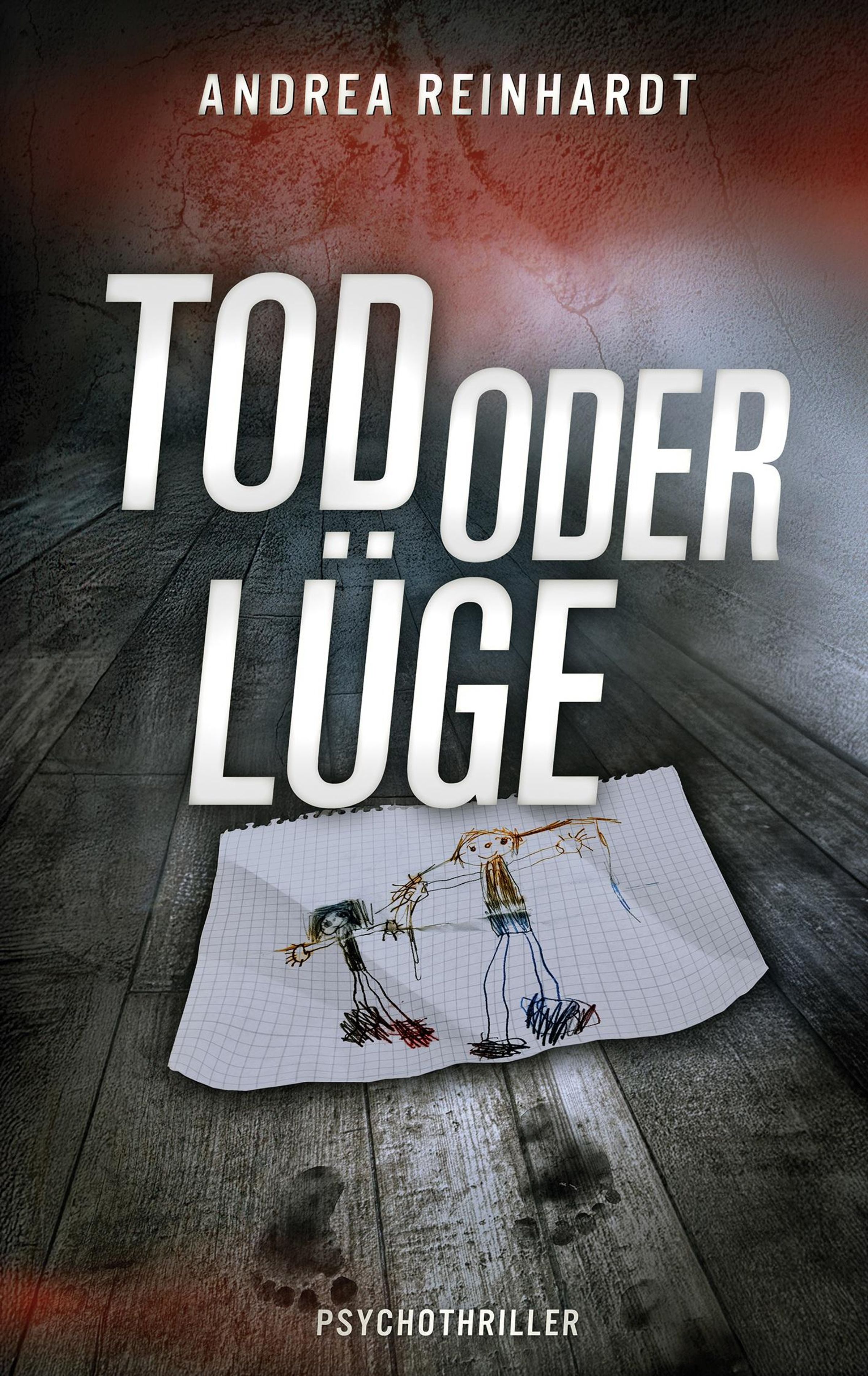 „TOD ODER LÜGE“; „ANDREA REINHARDT“; „PSYCHOTHRILLER“. Illustration: Kinderzeichnung auf kariertem Papier., Buch