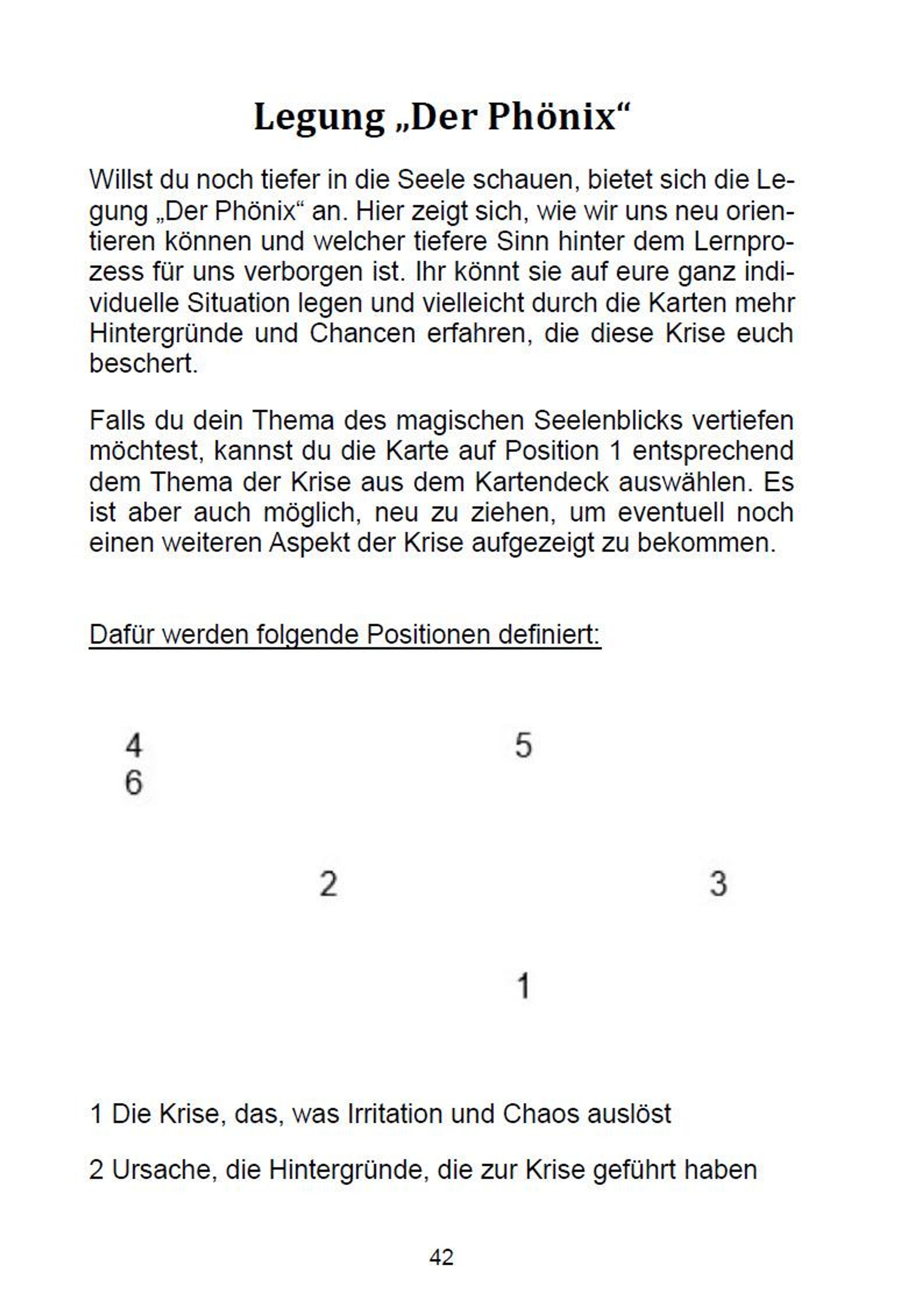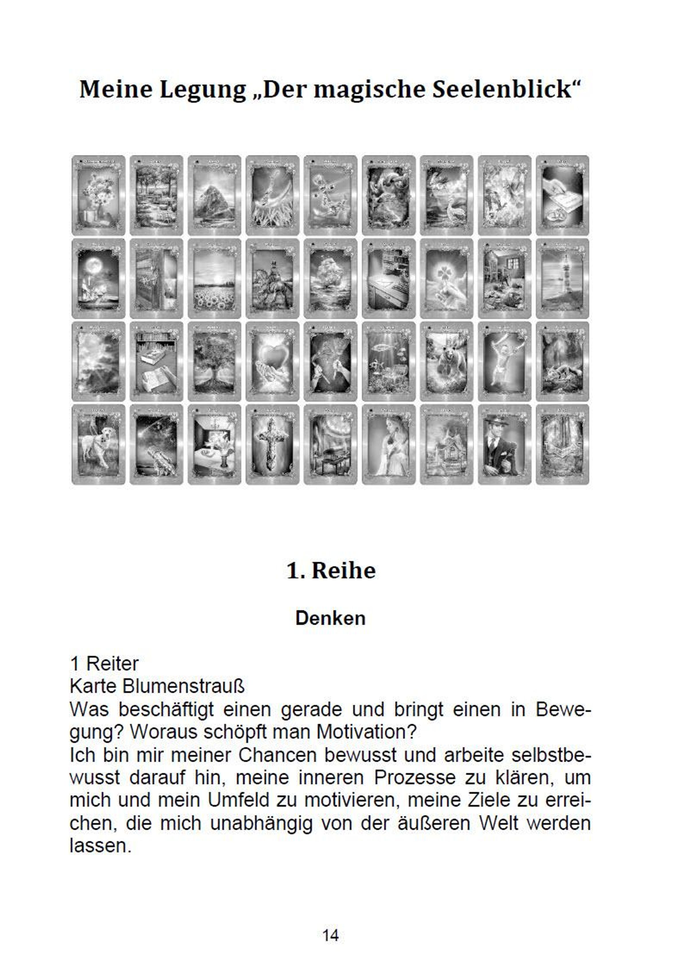 In dieser 9x4-Legung geht es mir darum, nachzuvollziehen, wo man in seiner spirituellen Entwicklung steht und was man tun kann, um innerlich zu wachsen. Dabei wird die ganz eigene Magie entdeckt, die dazu führt, dass man seinen Seelenplan erfüllt. Ein Blick in unser Seelenleben kann dabei besonders wertvoll sein, ist es doch ein Einblick in seelische Zusammenhänge, die auch unser äußeres Leben bestimmen. Du erkennst, wie du dein Inneres zum Leuchten bringen kannst, zum richtigen Zeitpunkt und in deinem eigenen Rhythmus. Zu wachsen und deine Freiheit und wahres Schöpfungspotenzial zu entfalten, hebt dein Bewusstsein an und verändert die Realität für dich ganz persönlich, wie auch für alle Menschen in deinem Umfeld.
