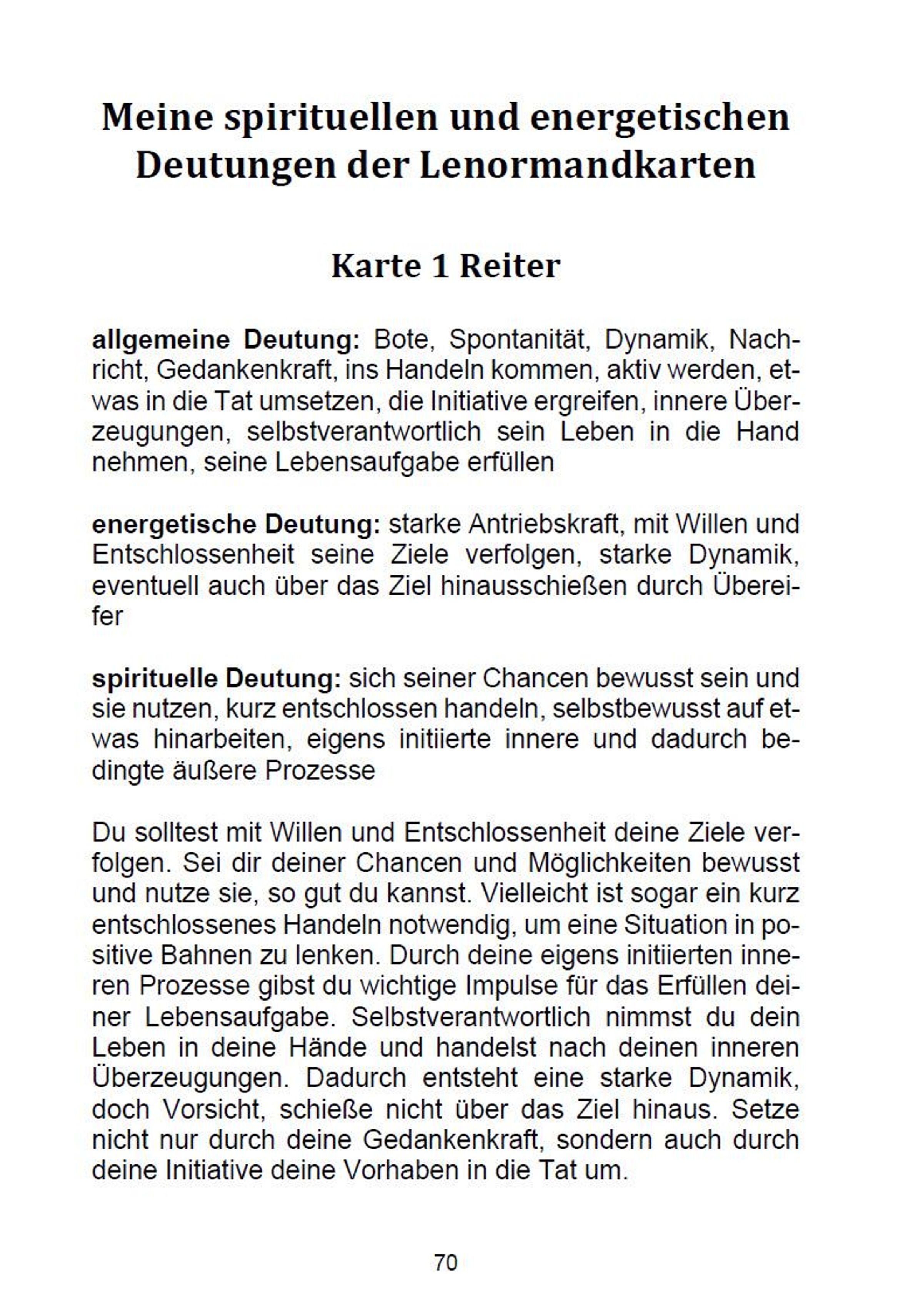 * Spirituelle und energetische Deutungen der Lenormandkarten