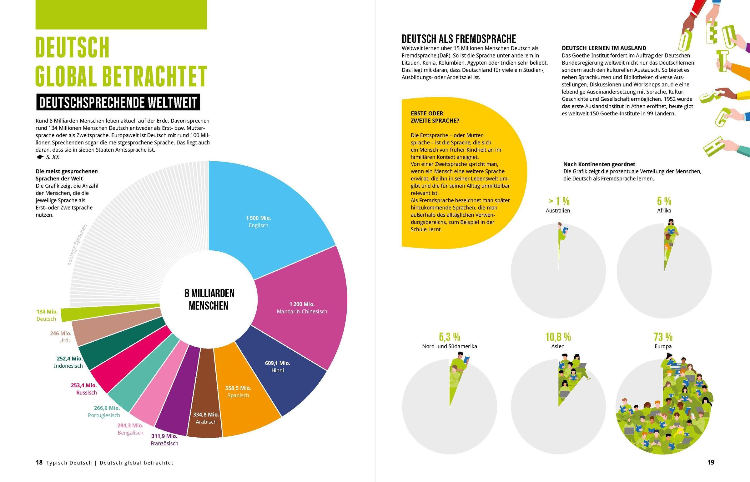 Die deutsche Sprache, wie Sie sie noch nie gesehen haben: in einem Panorama aus Grafiken, Karten und Illustrationen voller Sprachwissen, Kuriositäten und Aha-Momenten. Von Bandwurmwörtern und eigentümlichen Redewendungen bis zu Sprachpolitik und Historie. Jede Seite eröffnet neue Perspektiven: Welche Laute gibt es nur im Deutschen? Wann wurde die Rechtschreibung erfunden? Welchen Einfluss hat Sprache auf unser Denken und Handeln? Ein Buch, das anschaulich und konkret zeigt: Sprache ist lebendig, vielseitig, manchmal schräg und immer wieder erstaunlich.