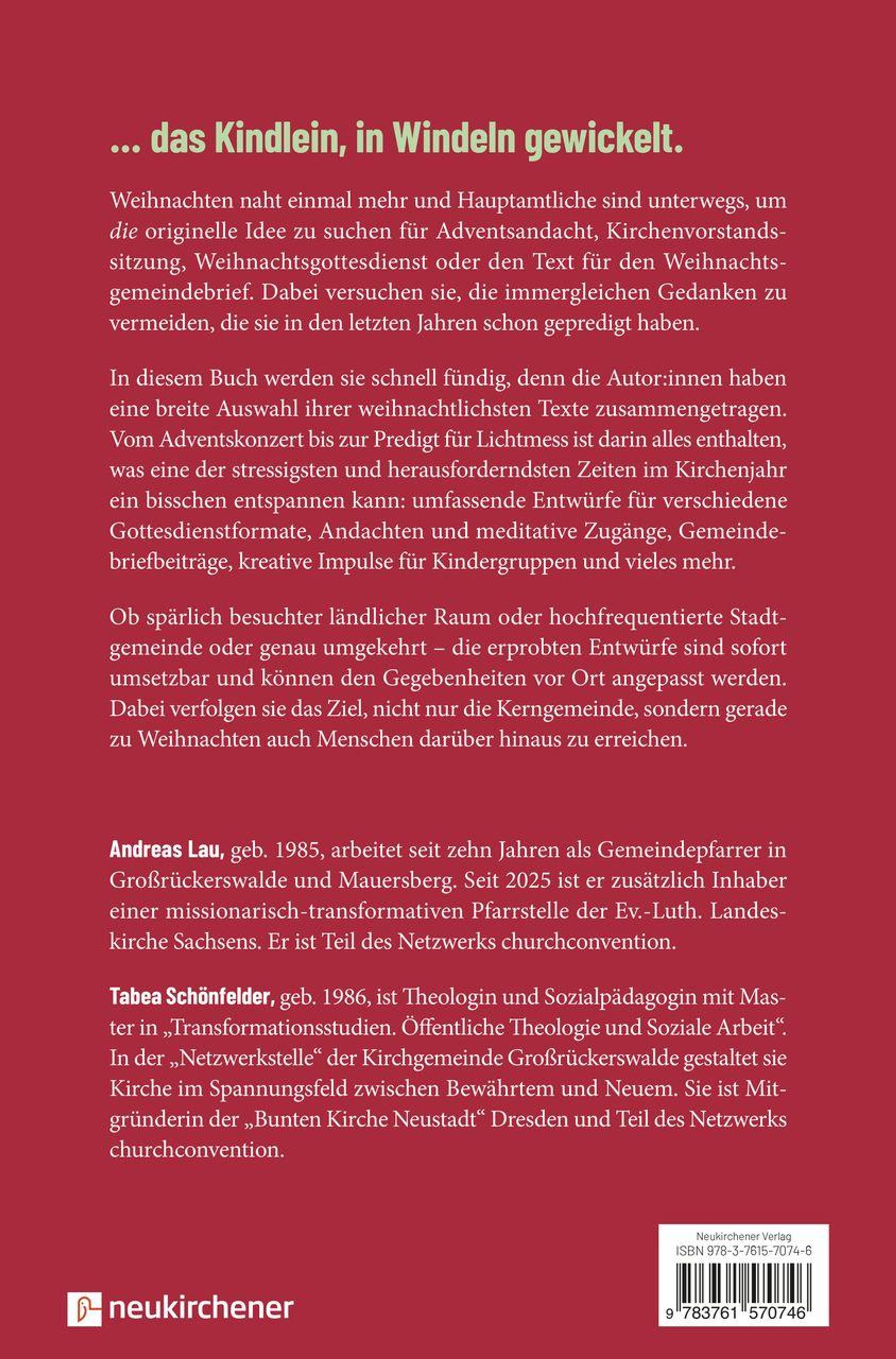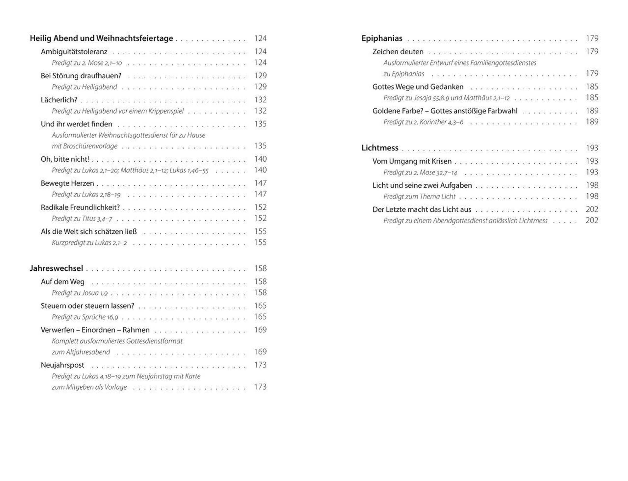 Kreativität braucht Impulse und genau die möchte dieses Buch anbieten: keine theoretischen, sondern praktische, kreative und vor allem bereits erprobte. Es will die Leidenschaft teilen, im Bekannten noch zu überraschen. Vom 1. Advent über den Jahreswechsel und Epiphanias bis Mariä Lichtmess am 2. Februar erstrecken sich umfassende Entwürfe für Andachten, Familien- und Konzertgottesdienste sowie klassische Predigtgottesdienste. Ergänzt wird diese Spannbreite durch Beiträge für den Gemeindebrief, meditative Zugänge wie "Stille im Advent" und kreative Impulse für Kindergruppen.