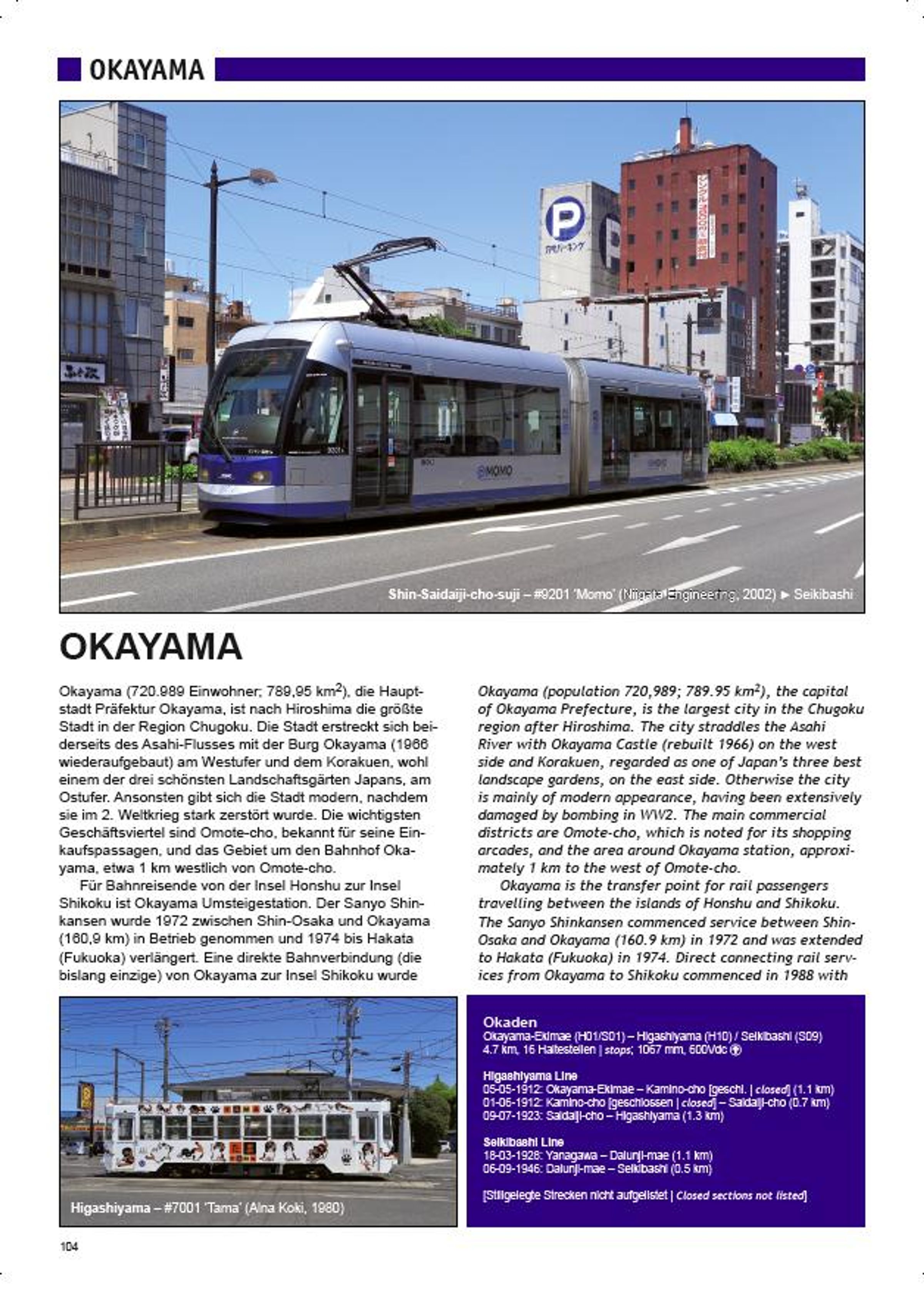 Im dritten Teil unserer Trilogie über städtischen Schienennahverkehr in Japan stellen wir alle Betriebe im Westen und Süden des Landes vor, von den klassischen U-Bahnen in Osaka, Kyoto oder Fukuoka über diverse besondere Bahnen wie Monorails oder Peoplemover bis hin zu den zahlreichen Straßenbahnen, darunter das größte japanische Netz in Hiroshima. Das Buch ist wie immer illustriert mit zahlreichen Farbfotos und detaillierten Netzplänen.// The third volume of our trilogy about urban rail systems in Japan covers all the systems in West and South Japan, from the metros in Osaka, Kyoto and Fukuoka to the different special transit systems like monorails and people movers, and to the numerous tramways, including Japan's largest network in Hiroshima. As usual, the book is illustrated with a large number of recent colour photos and detailed network maps.