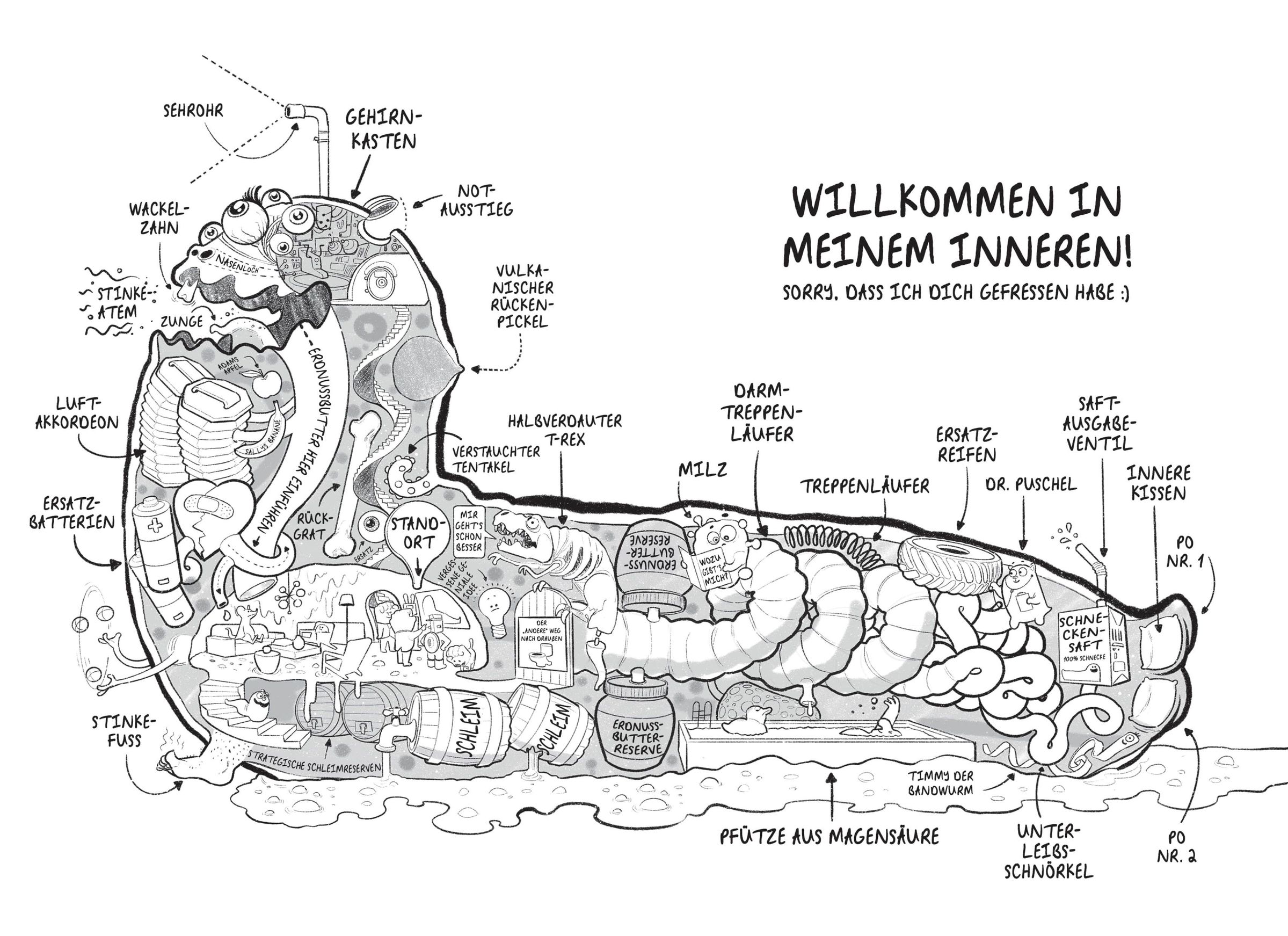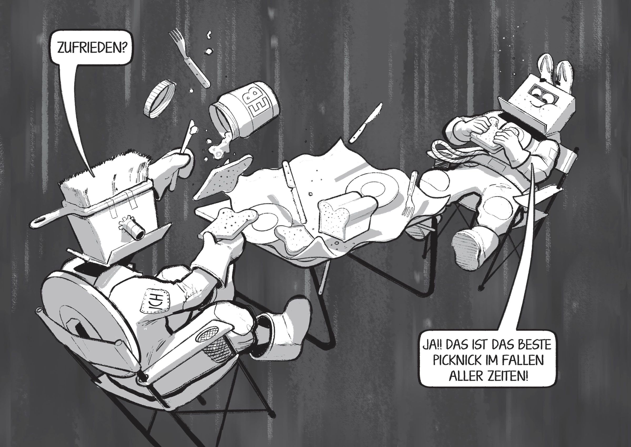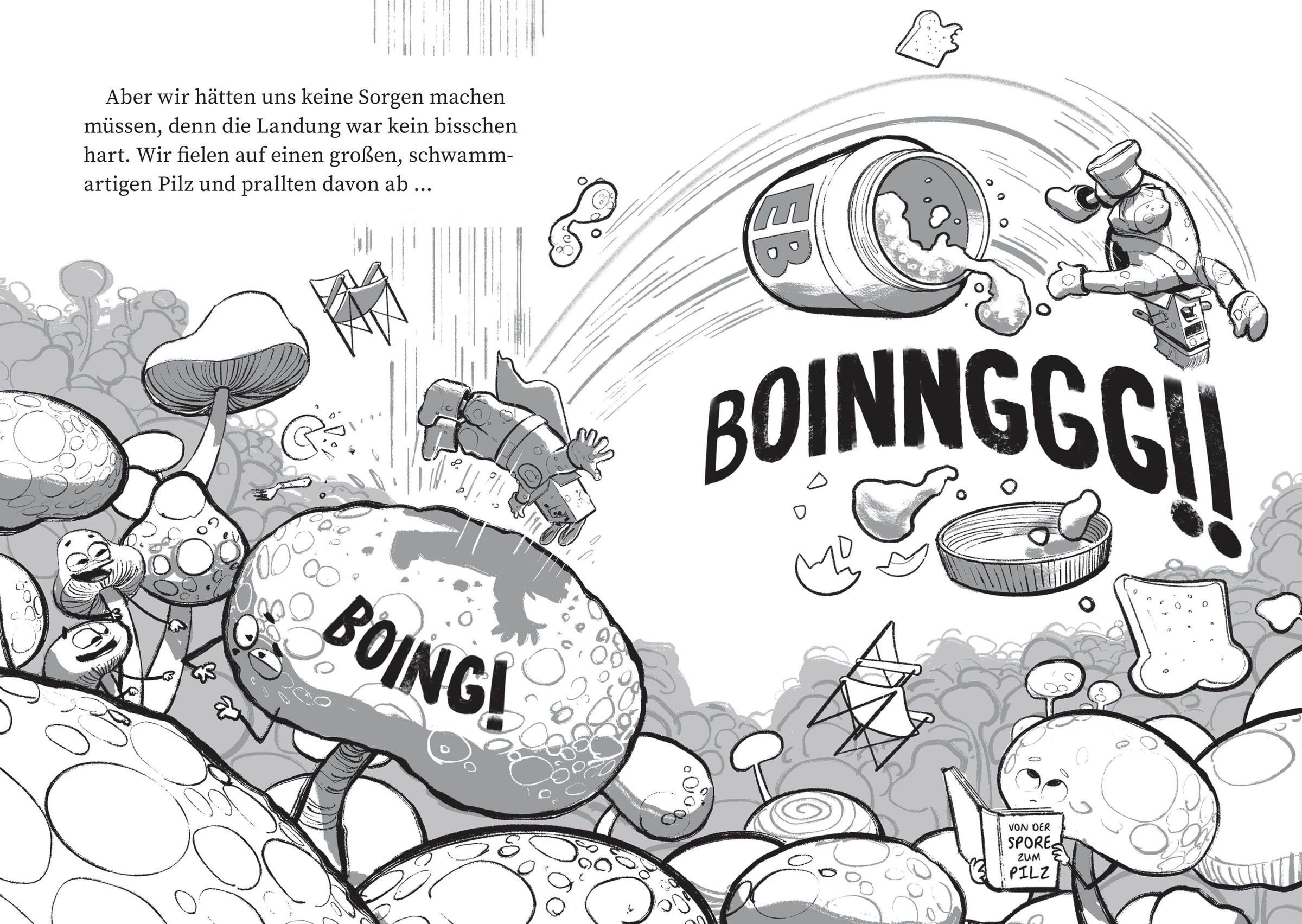 Und auch diese Geschichte ist ein einziges durgeknalltes Abenteuer: Es beginnt mit einem Picknick in der Luft, führt mitten hinein in einen Kampf mit fleischfressenden Pflanzen - und endet ... im Bauch eines Erdnussbutter-Monsters! Und was flattert da? Eine Fledermaus-Ratte? So was gibt's nur hier!