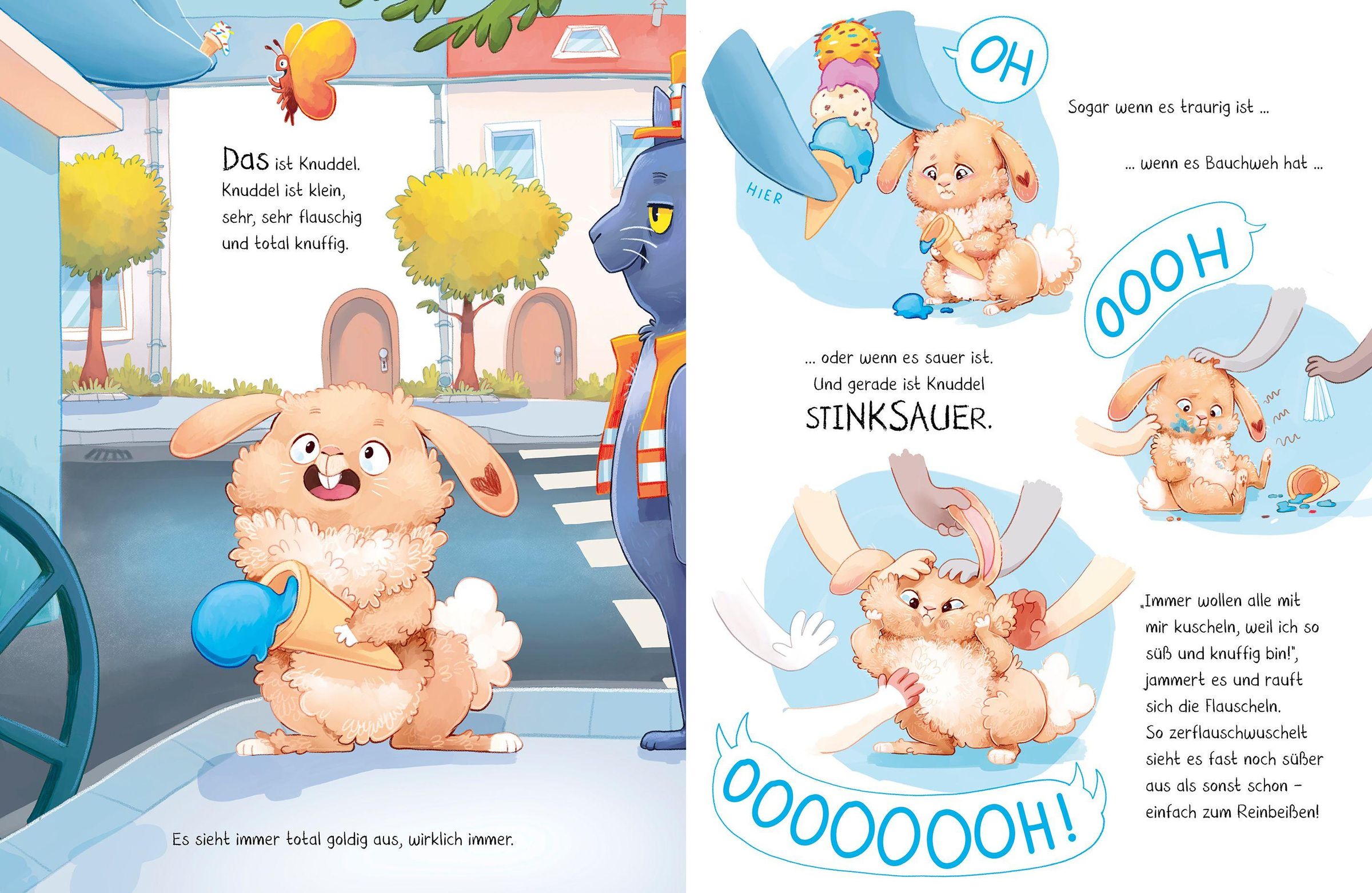 Stell dir das süßeste, knuffigste, kuschligste Häschen aller Zeiten vor. Hast du's vor Augen? Ist es auch flauschig genug? Gut. Das ist Knuddel. Knuddel ist so goldig, dass man ihn einfach liebhaben muss. Aber - Knuddel kann das gar nicht leiden! Blöd, dass man sein zartes Stimmchen kaum hören kann, wenn es wieder mal umarmt wird. Was macht man da nur? Knuddel hat ein paar Ideen ...