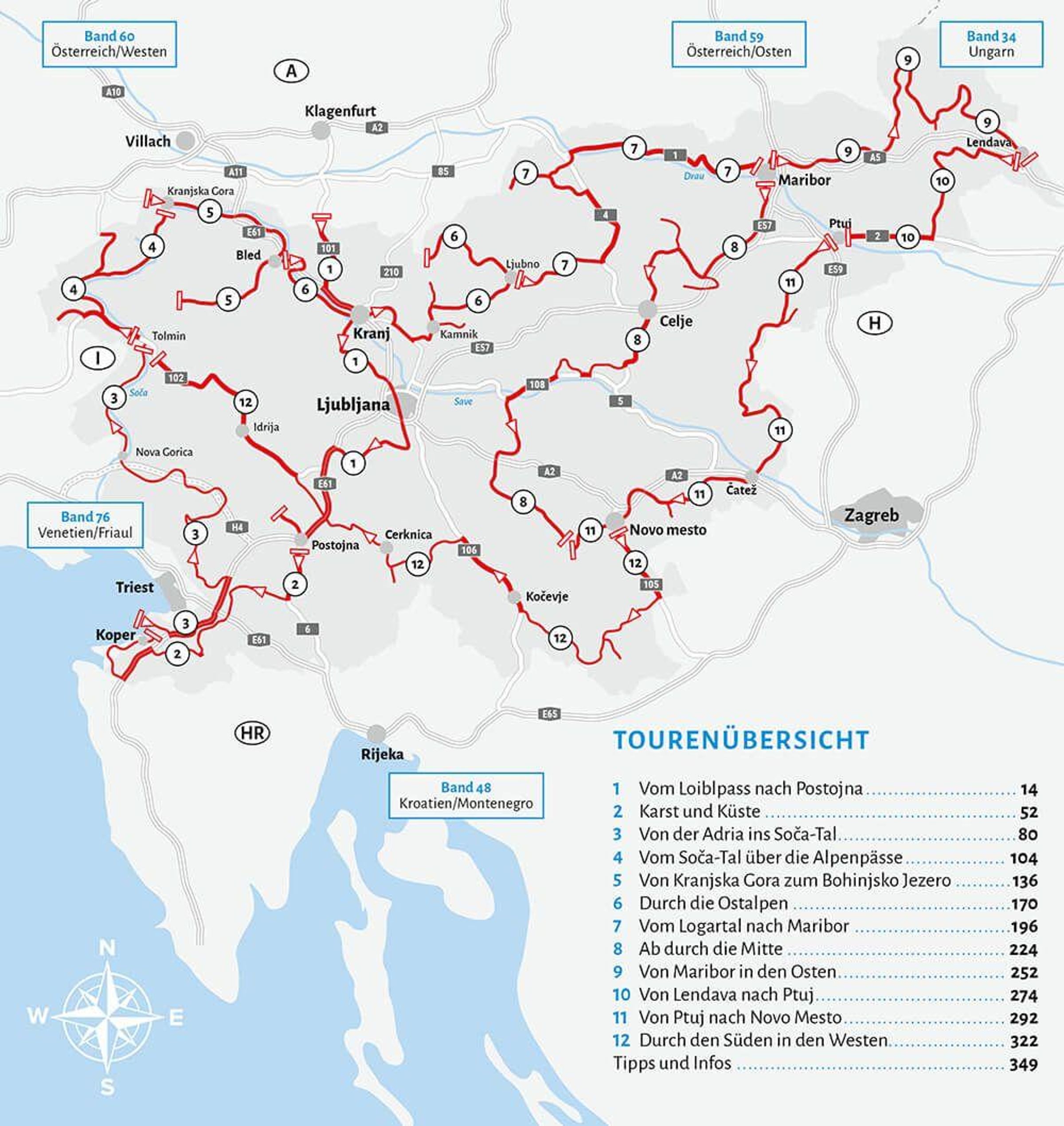Kleines Land, große Vielfalt: Slowenien überrascht Naturliebhaber, Kulturinteressierte, Aktivurlauber und Genießer gleichermaßen. Entdecken Sie auf 12 bunten Touren das Land zwischen Alpen und Adria - von den Gassen Ljubljanas bis ins türkisblaue Söa-Tal, von Kalkalpenpässen bis in die größten Höhlensysteme Europas. Abwechslungsreiche Routen mit Fahrradtouren, Wanderungen, Sightseeing und ganz vielen Genussmomenten Wertvolle Insider-Tipps und Hintergrundwissen zu den spannendsten Naturspektakeln und Sehenswürdigkeiten Mehr als 150 ausgewählte Übernachtungs- und Campingplätze mit detaillierten Beschreibungen und Anfahrtswegen