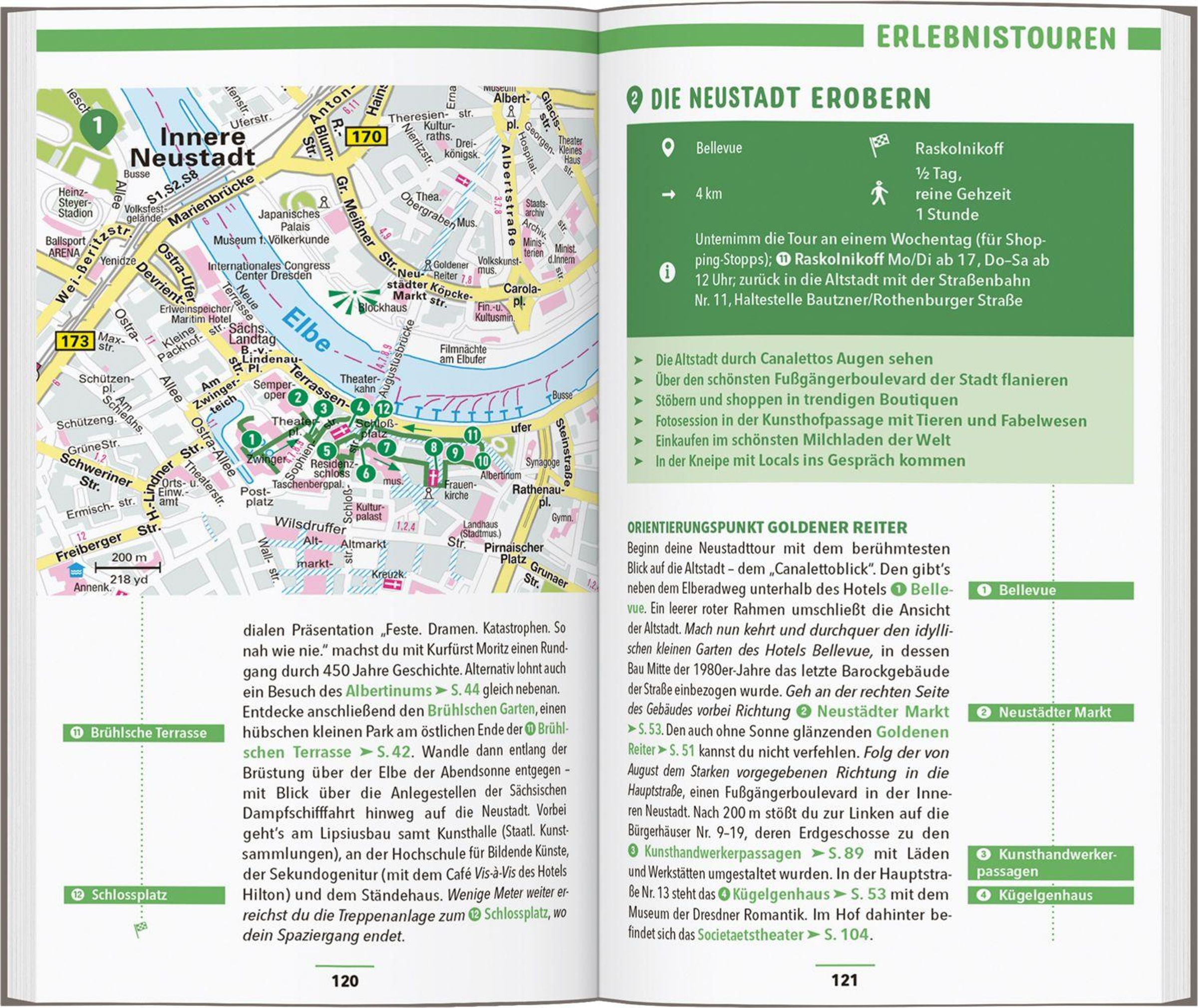 Wer Dresden wirklich kennenlernen will, muss tiefer eintauchen - vor der Sixtinischen Madonna stehen, über das Blaue Wunder gehen und abends in einer Neustadtkneipe unerwartete Freundschaften schließen. In deinem MARCO POLO Reiseführer Dresden & Sächsische Schweiz findest du viele Tipps zum Shoppen & Stöbern, Essen & Trinken, Ausgehen & Feiern.