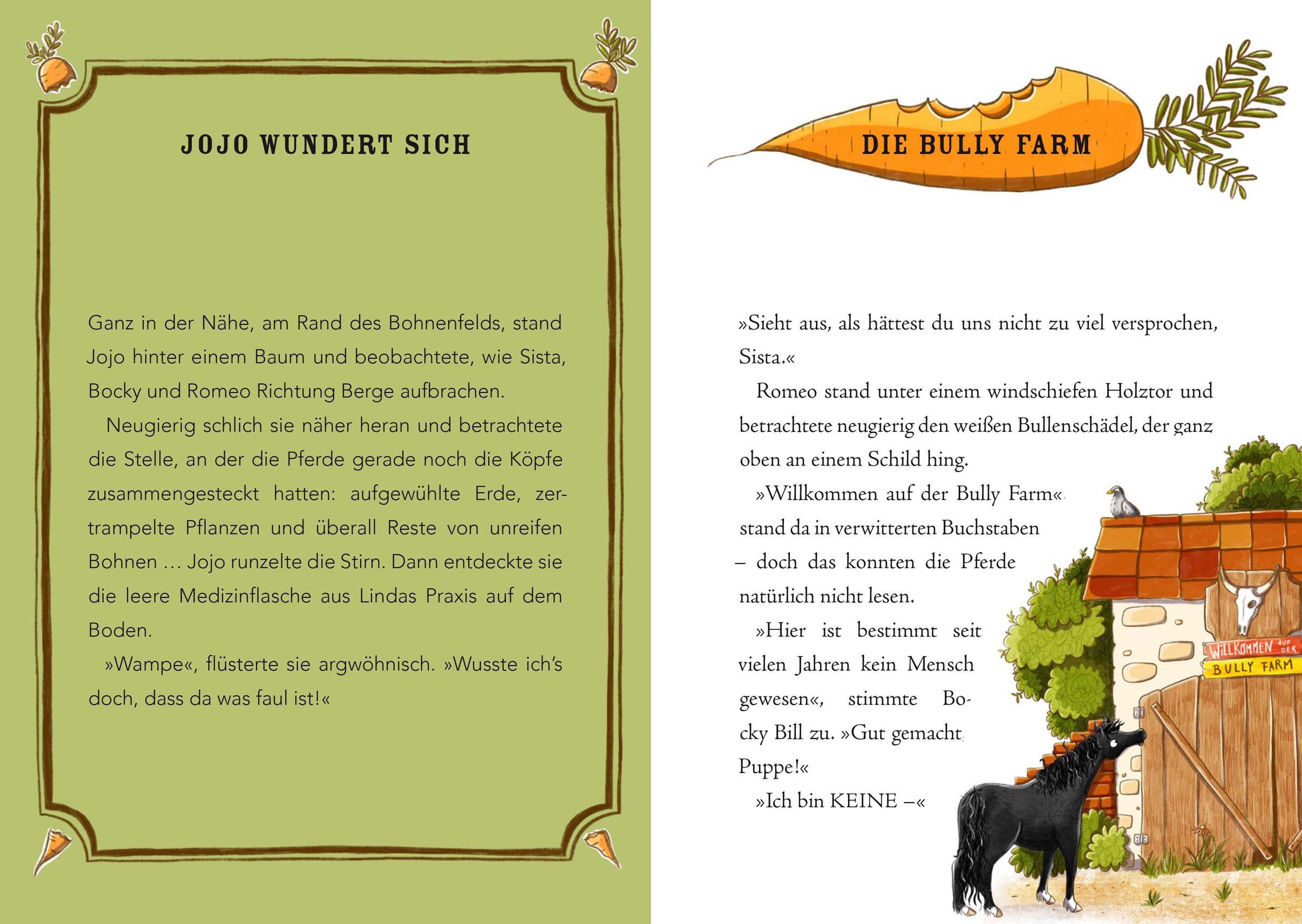 Koppel frei für die coolsten Pferde der Welt: Bocky Bill und Romeo! Frech, lustig und actionreich machen die Gängster-Pferde das Land unsicher. Ein durchgehend farbig illustriertes Kinderbuch ab 8 Jahren. Für die Gängster-Pferde Bocky Bill und Romeo wird im Dörfchen Chili ein Traum wahr: endlose Bohnenfelder und Gewächshäuser voller Gemüse, so weit das Auge reicht! Denn hier wird Darlings weltberühmte Dosensuppe hergestellt. Für die Gängster-Pferde bedeutet das vor allem eins: Futtern ohne Ende! Doch eines Nachts werden sie Zeugen, wie Diebe die geheime Spezialgewürzmischung für Darlings Gemüsesuppe stehlen wollen. Nun müssen sich Bocky Bill und Romeo entscheiden, auf wessen Seite sie stehen.