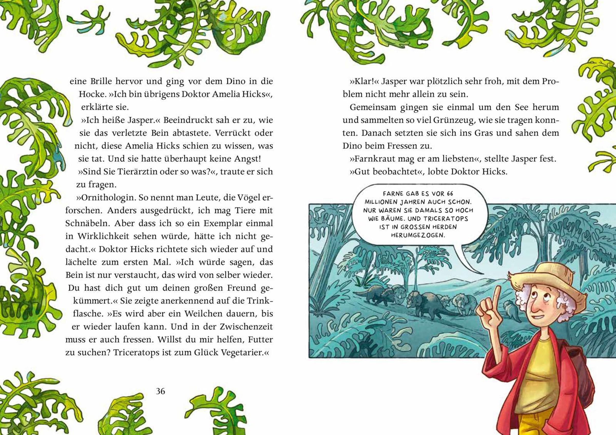Aus Versehen verwandelt Jasper seinen alten Wecker in eine Zeitmaschine, und plötzlich landet ein Triceratops hinter dem Haus - sieben Meter groß, mit einer Schwäche für Honigpops. Endlich hat Jasper den vierbeinigen Freund, den er sich immer gewünscht hat! Doch während Popsi, versteckt in einem alten Steinbruch, Sprechen und sogar Fahrradfahren lernt, schickt der Bürgermeister einen Suchtrupp los, um das Tier aus der Urzeit einzufangen. Als den Dino auch noch schlimmes Heimweh packt, steht Jasper vor der schwersten Entscheidung seines Lebens ...