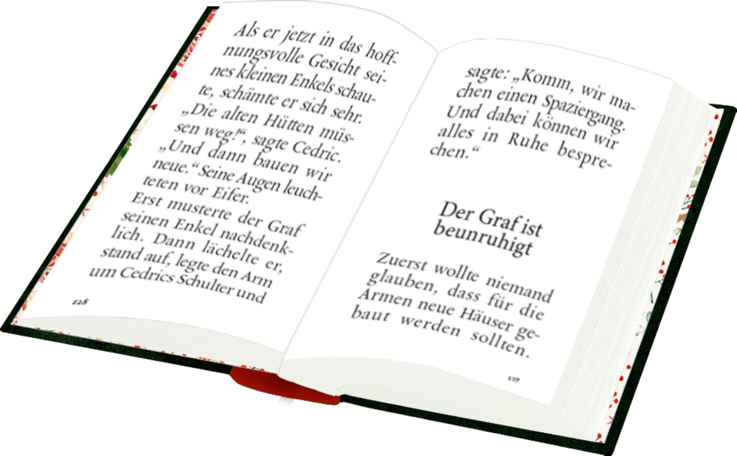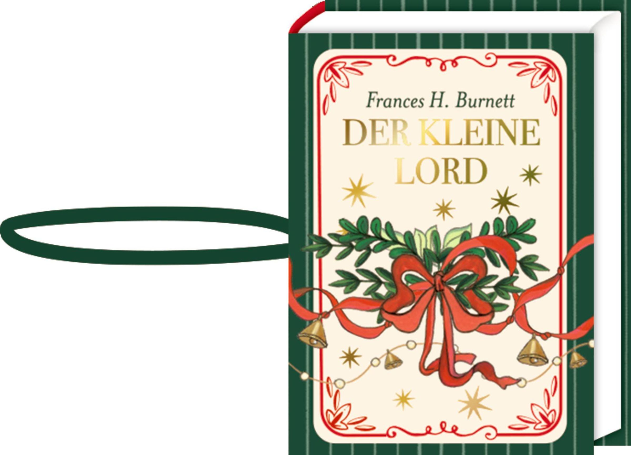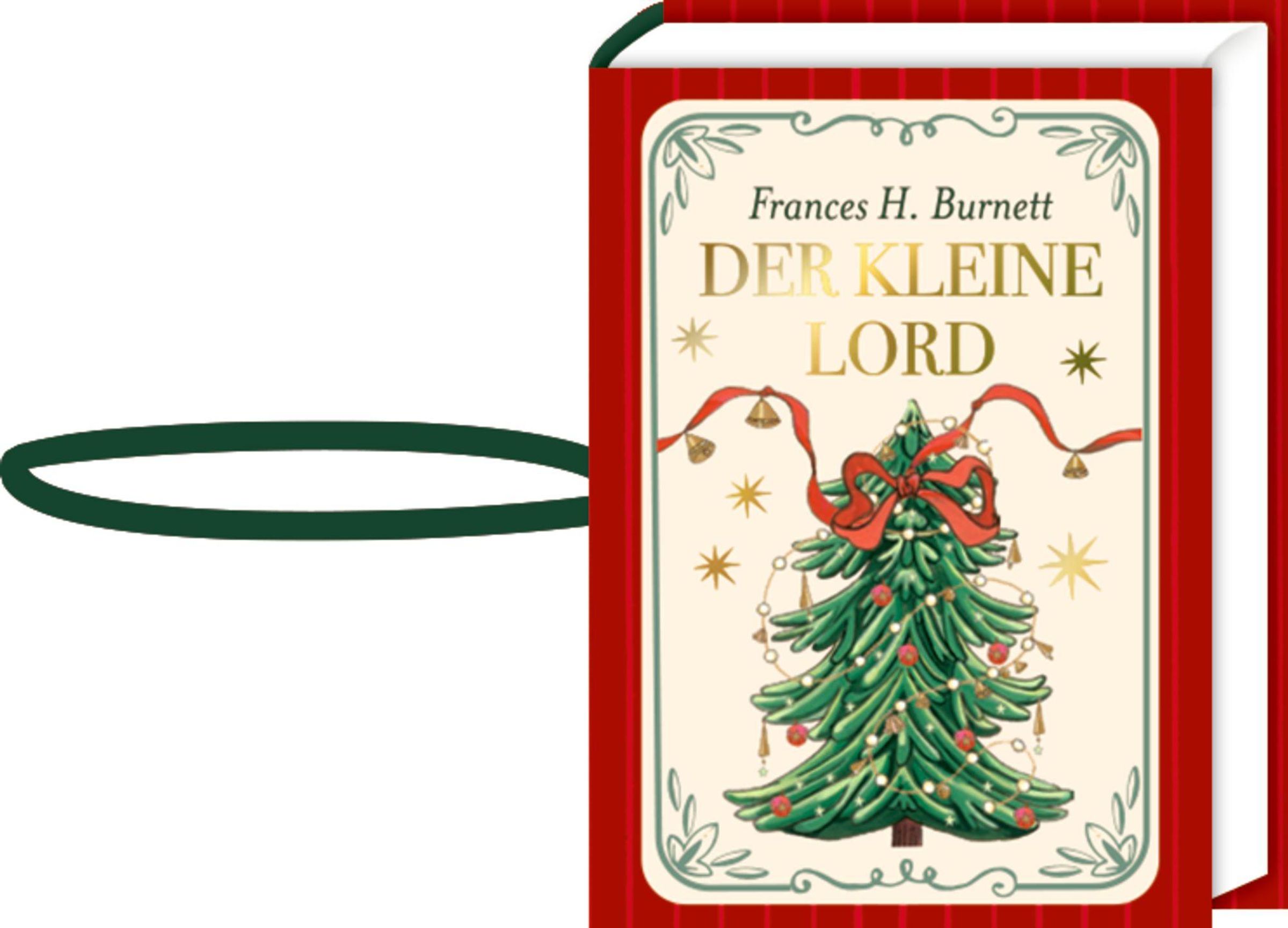 Vier Buchcover, zwei mit „Für Dich“, zwei mit „Frances H. Burnett DER KLEINE LORD“. Weihnachtliche Motive: Mistelzweig, Kranz, Tanne., Buch