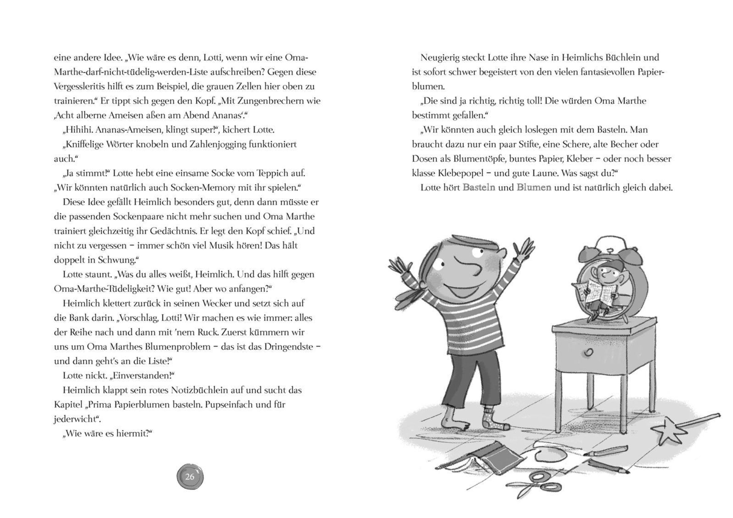 Heimlich ist ein echter Hauswichtel. Nur, wer braucht noch Hauswichtel, wo nichts mehr repariert, sondern alles gleich weggeworfen wird? Niemand! Doch dann trifft Heimlich auf Lotte und die braucht seine Hilfe. Denn in Lottes Familie ist ständig was los: Papas Socken verschwinden, das Küchenradio will nicht mehr, Lottes Friseurtermin läuft anders als geplant und in Mamas Geburtstagskuchen klafft ein riesiges Loch. Im Grunde das ganz normale Familienchaos! Aber zum Glück hat Lotte jetzt ja Heimlich. Und der weiß, was hier zu tun ist. Denn es wäre doch gelacht, wenn ein Hauswichtel wie er hier nicht helfen könnte!