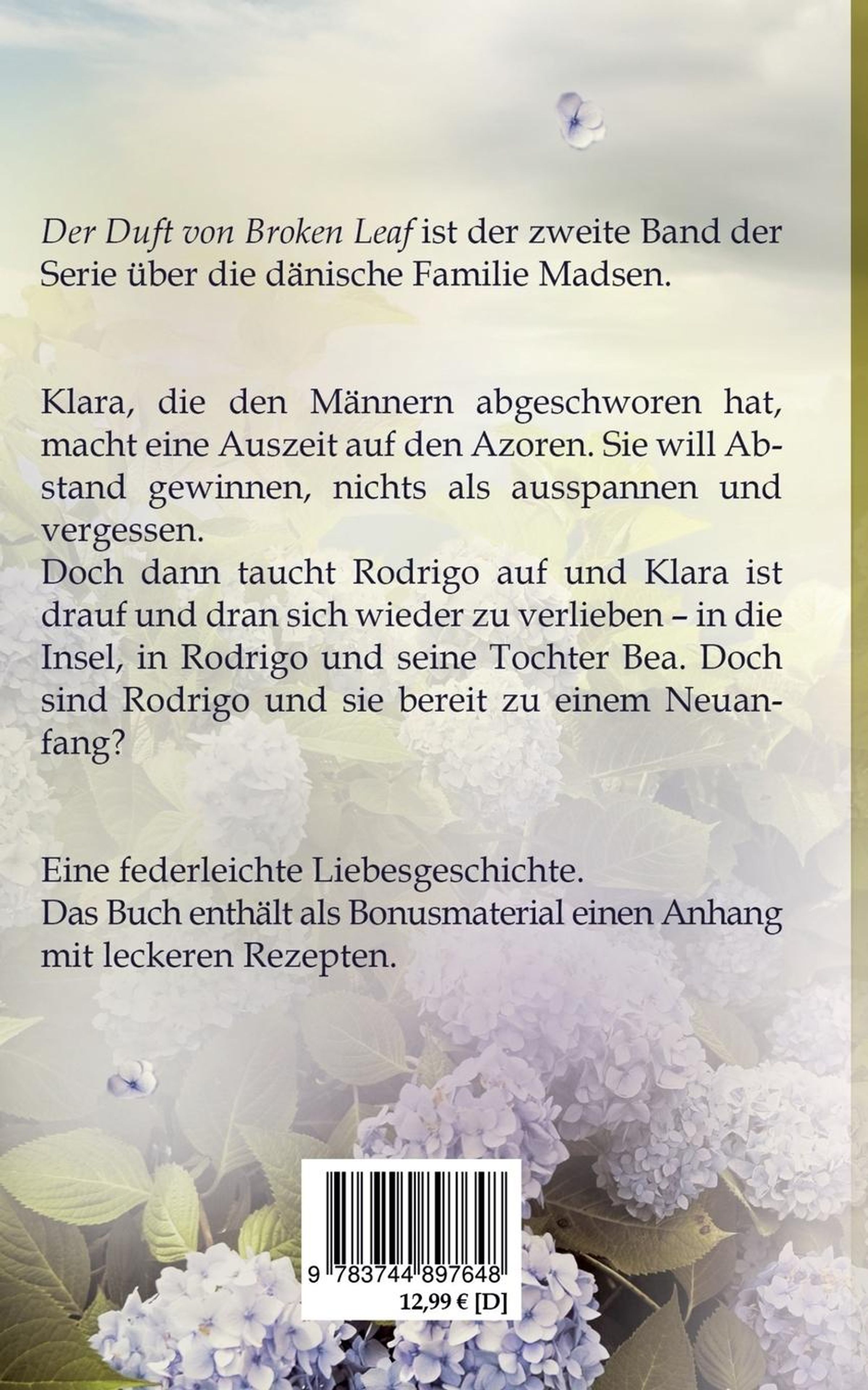 Der Duft von Broken Leaf ist der zweite Band der Serie über die dänische Familie Madsen. Wie immer gibt es als Bonusmaterial im Anhang leckere Rezepte.