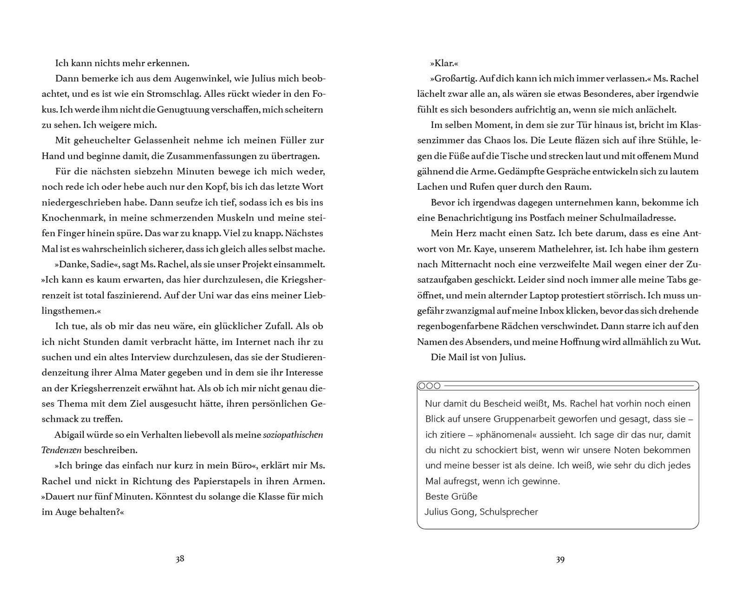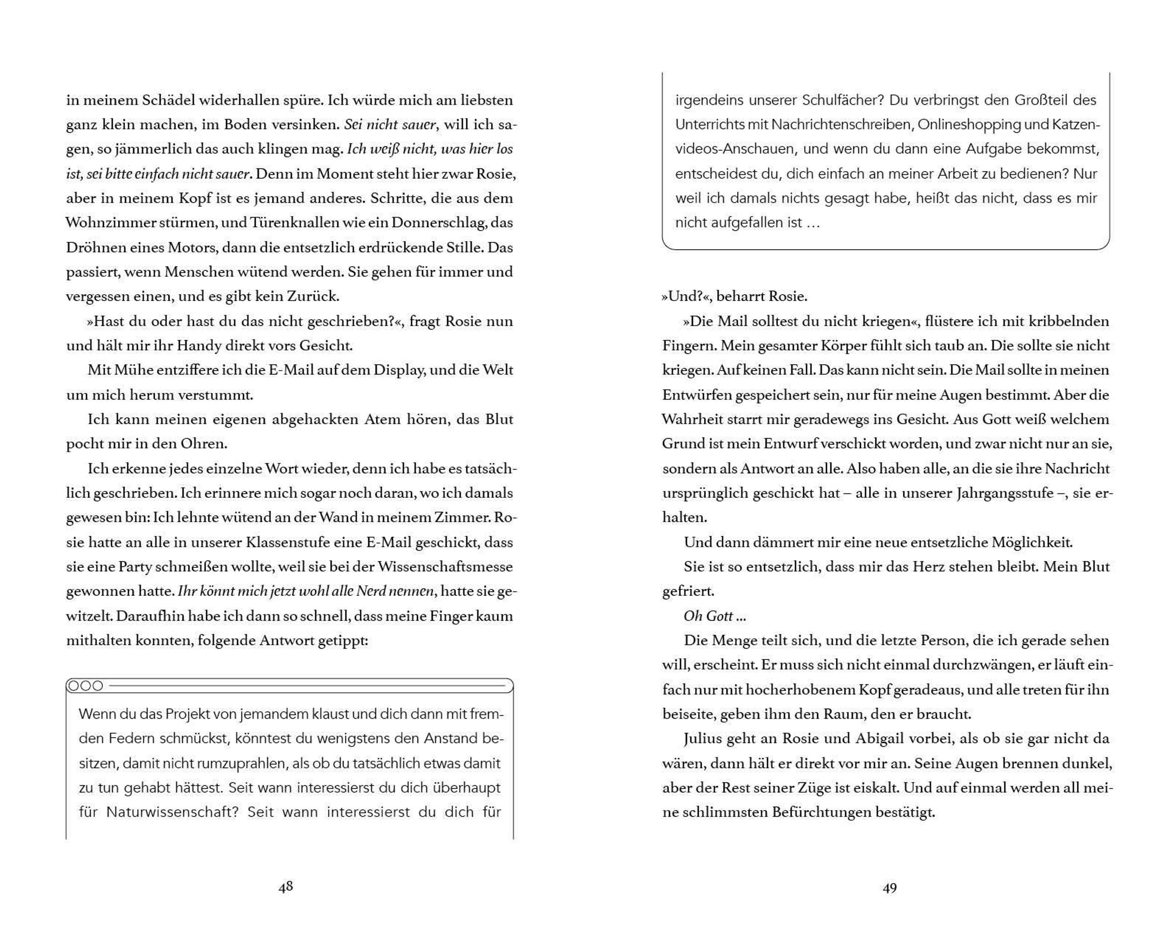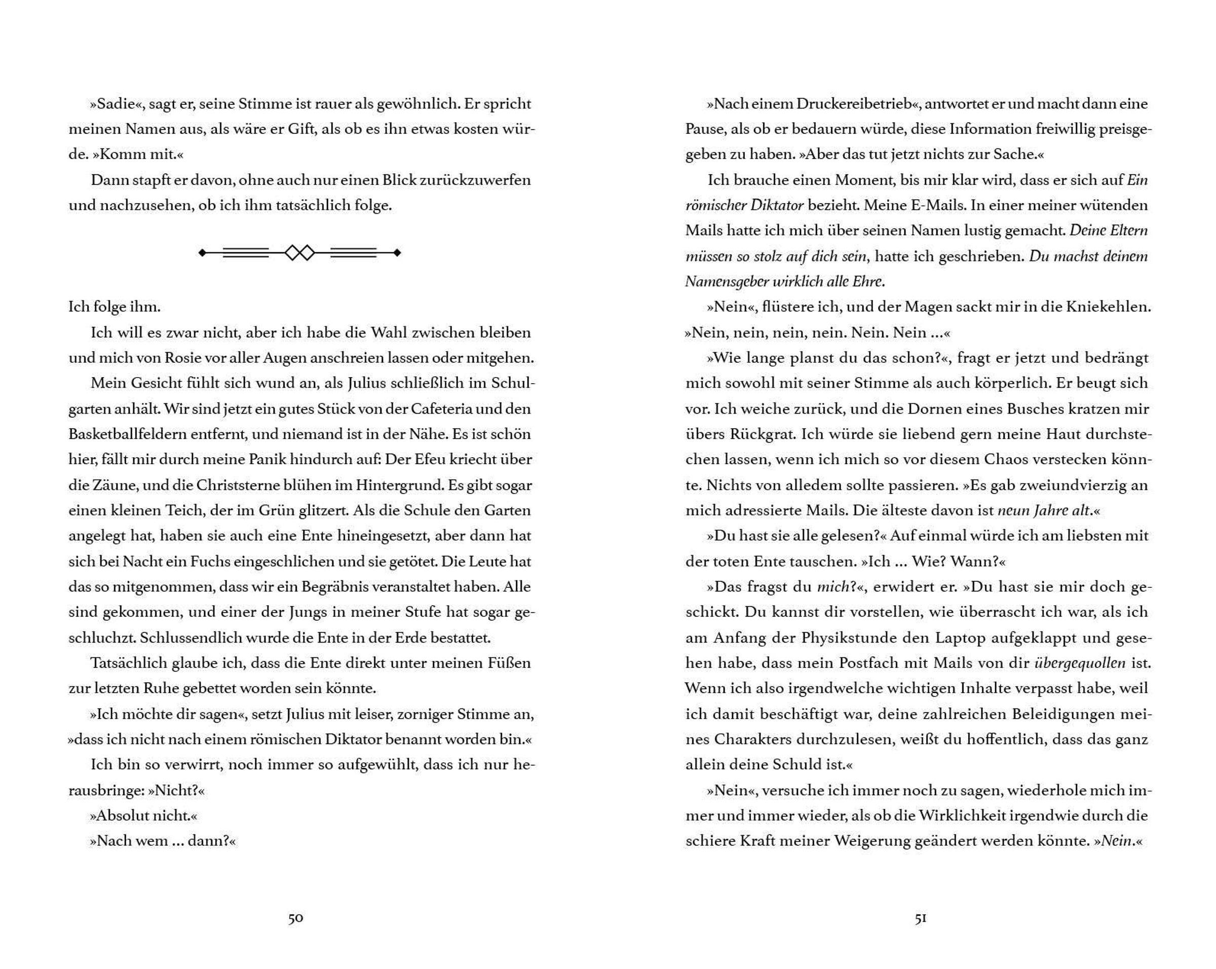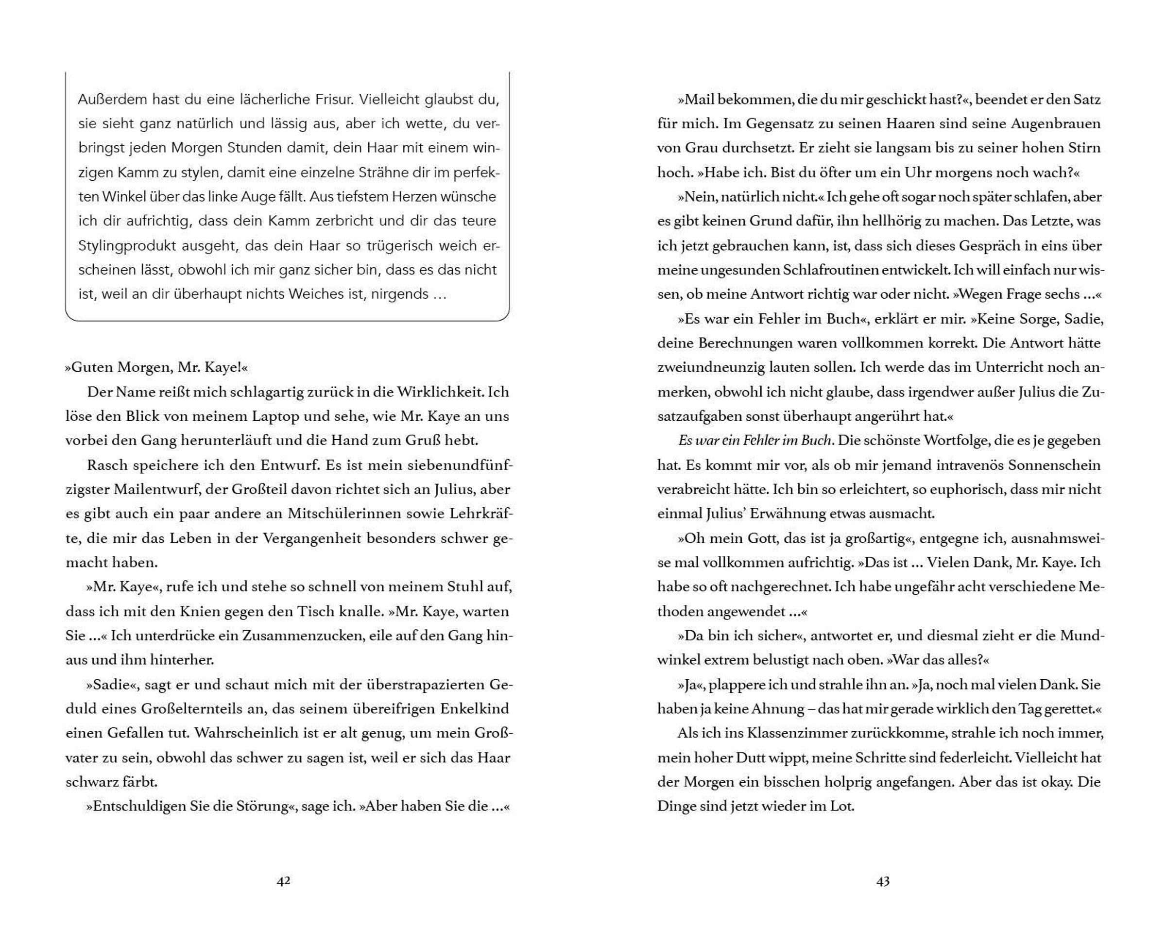 Eigentlich hätte niemand jemals diese Mails lesen sollen. Doch als Sadie versehentlich auf "Senden" drückt, weiß die ganze Schule, was sie wirklich denkt - und in ihrem Leben bricht das Chaos aus: Drama, Konfrontationen und Geläster sind vorprogrammiert. Nur einem scheinen die Nachrichten egal zu sein: Julius. Ausgerechnet der Junge, den sie nie leiden konnte, beginnt sogar, die "echte" Sadie spannend zu finden ...