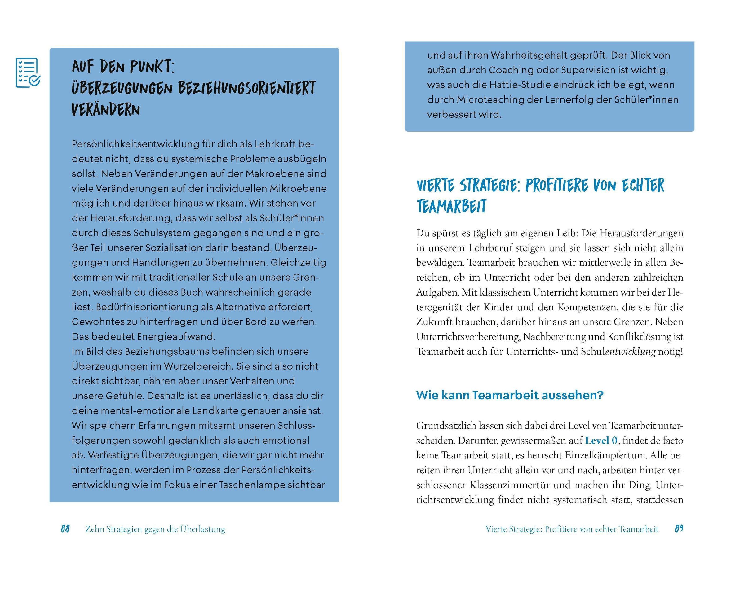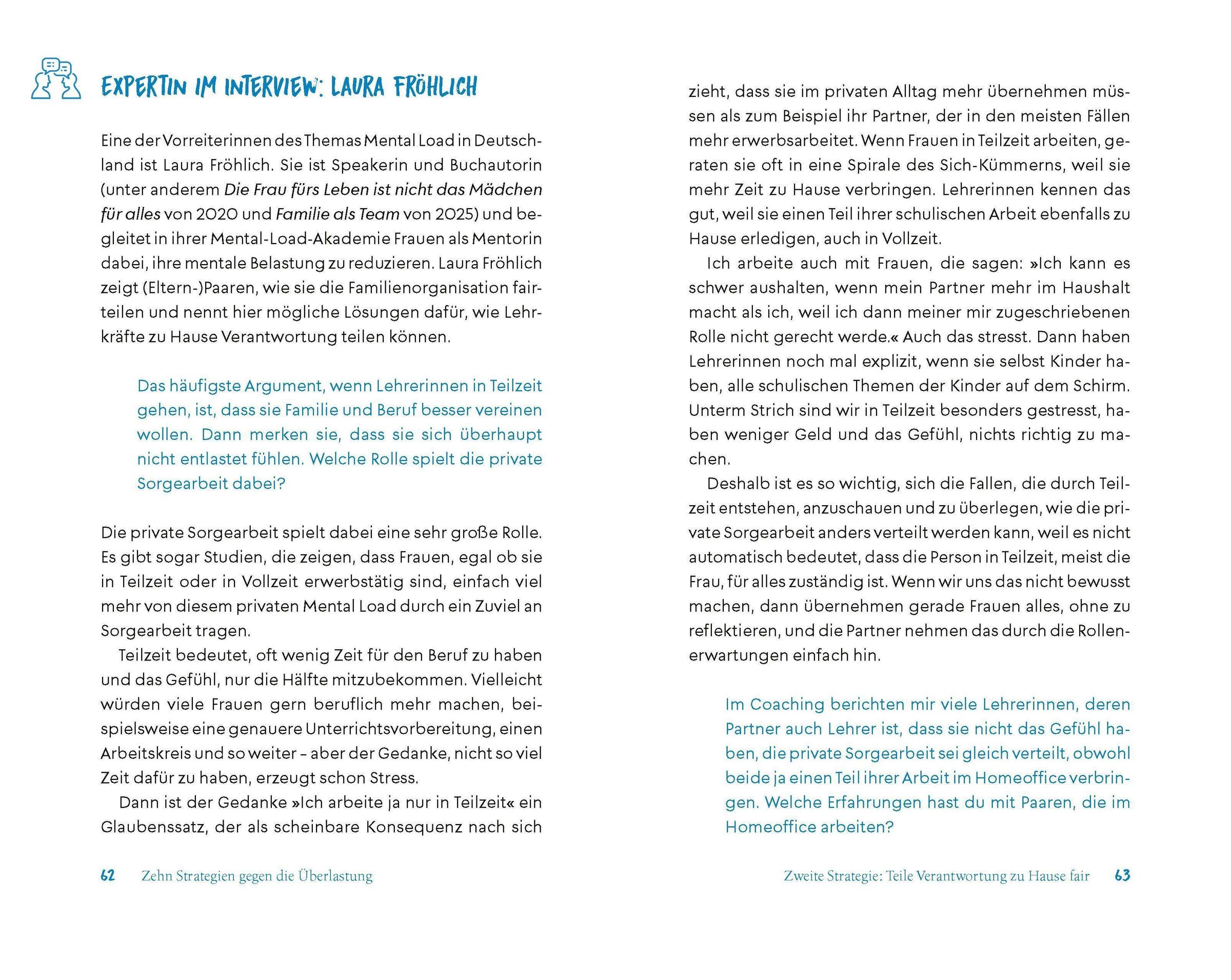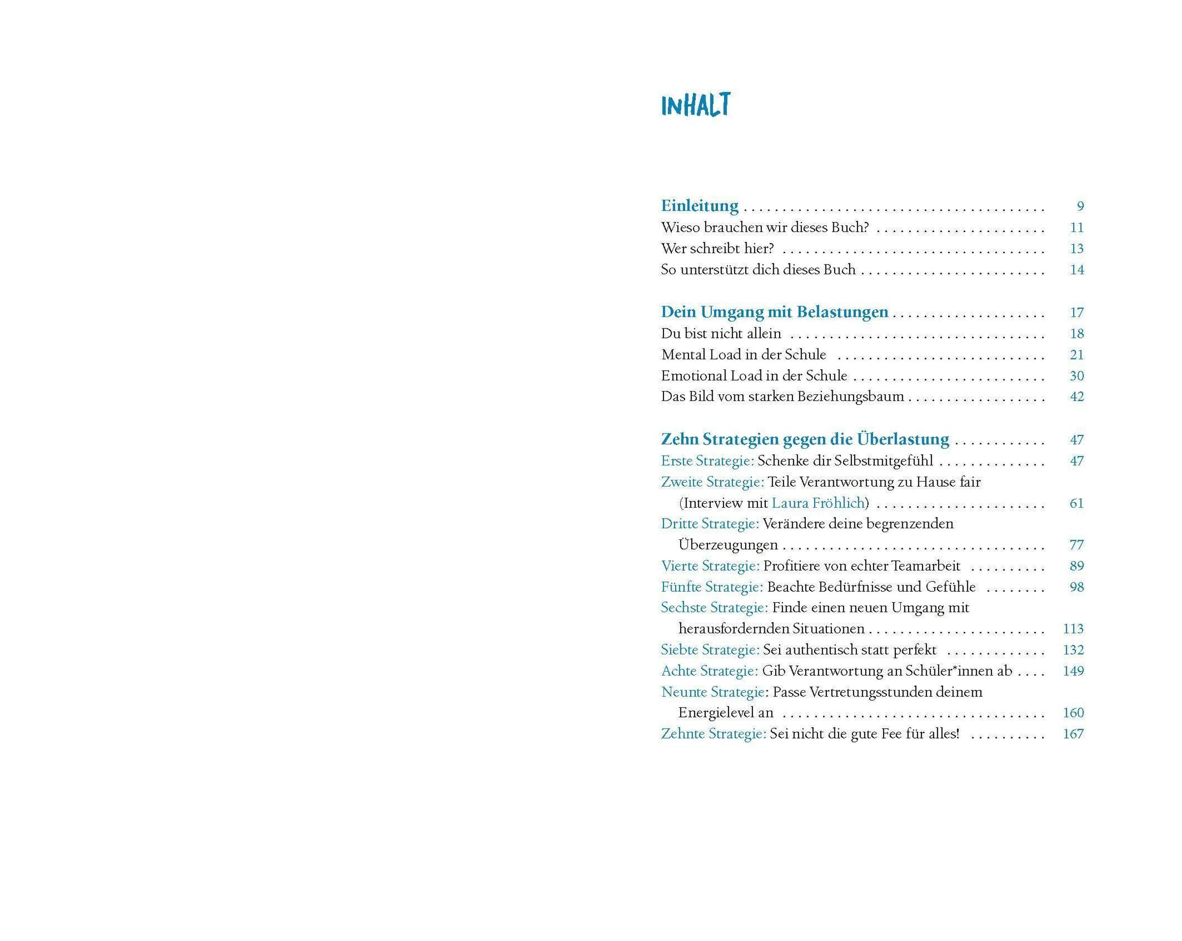 'Ein kraftvolles Buch, das zeigt, dass Entlastung im Schulalltag möglich ist. Es hilft Lehrkräften, endlich aus der Überforderung auszusteigen und wieder mit Klarheit und Verständnis für ihre Schüler*innen da zu sein.' Laura Fröhlich, Autorin und Mental-Load-Expertin