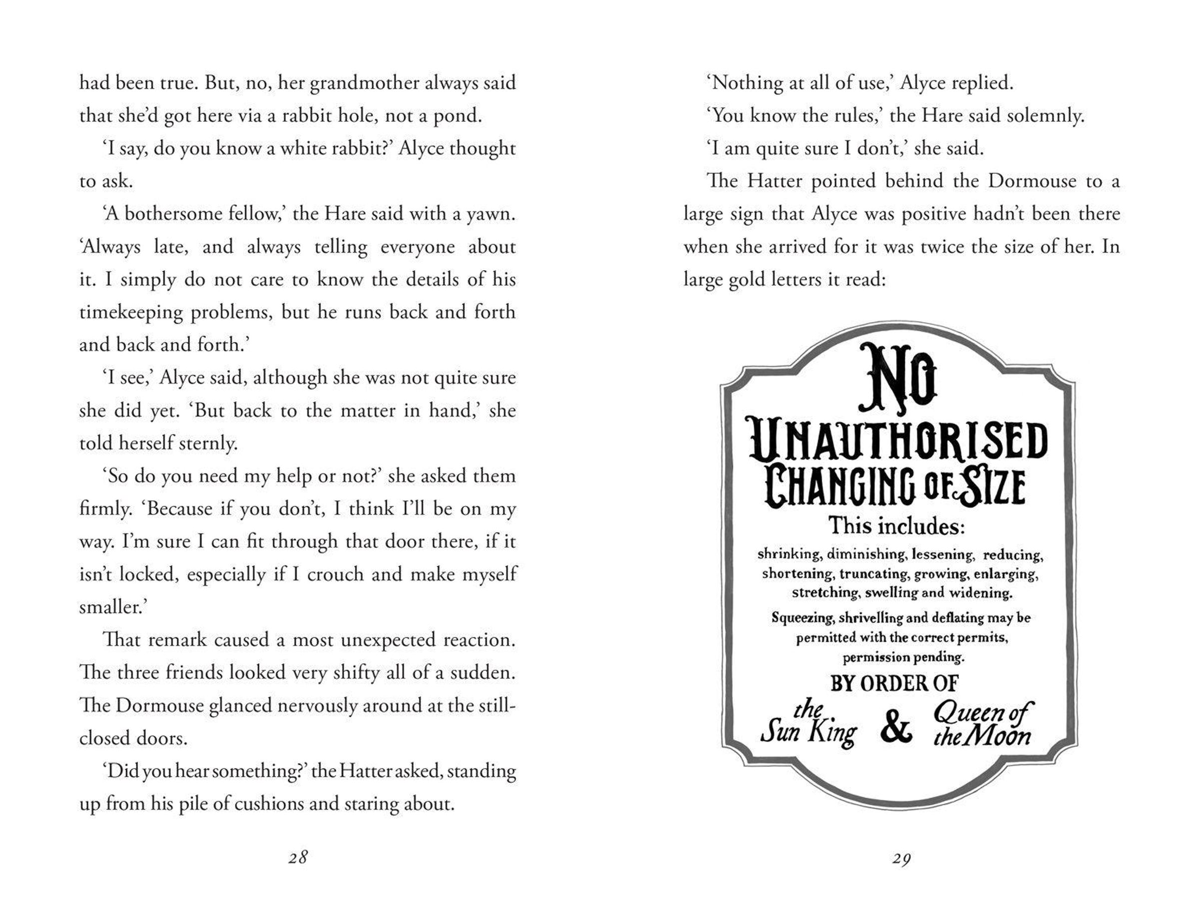 England, 1919. Alyce - with a Y - lives with her grandmother, the original Alice, having lost her father during the Great War. When a mysterious invitation to a tea party hits her square in the face, Alyce realises her grandmother's strange stories of a place called Wonderland might have some truth to them after all.