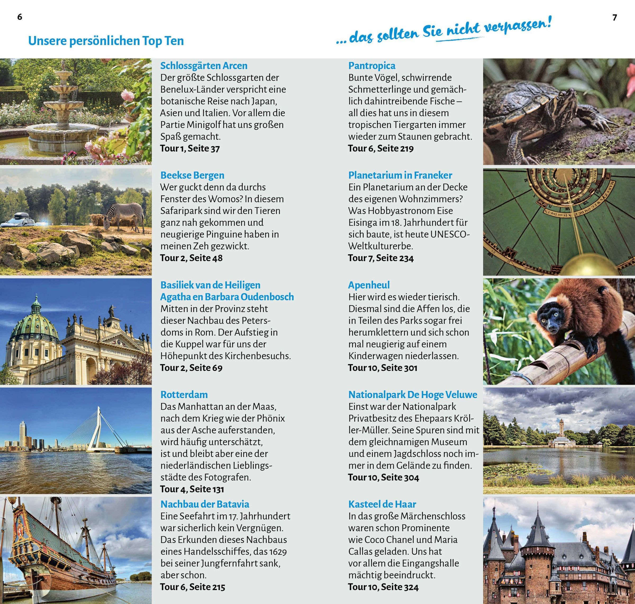 Auf 10 ausgewählten Touren entdecken Sie die Niederlande von den sanften Hügeln im Südosten bis zu den weiten Sandstränden im Westen. Dazwischen liegen malerische Städte, pittoreske Dörfer, beeindruckende UNESCO-Weltkulturerbestätten, grüne Naturgebiete und das endlose IJsselmeer. Große Metropolen, gemütliche Städte, malerische Dörfer und Naturerlebnisse - wir führen Sie zu den Highlights Wertvolle Insidertipps: Nationalparks, Schlösser, Museen und andere Sehenswürdigkeiten, Kulturgeschichte und Wissenswertes