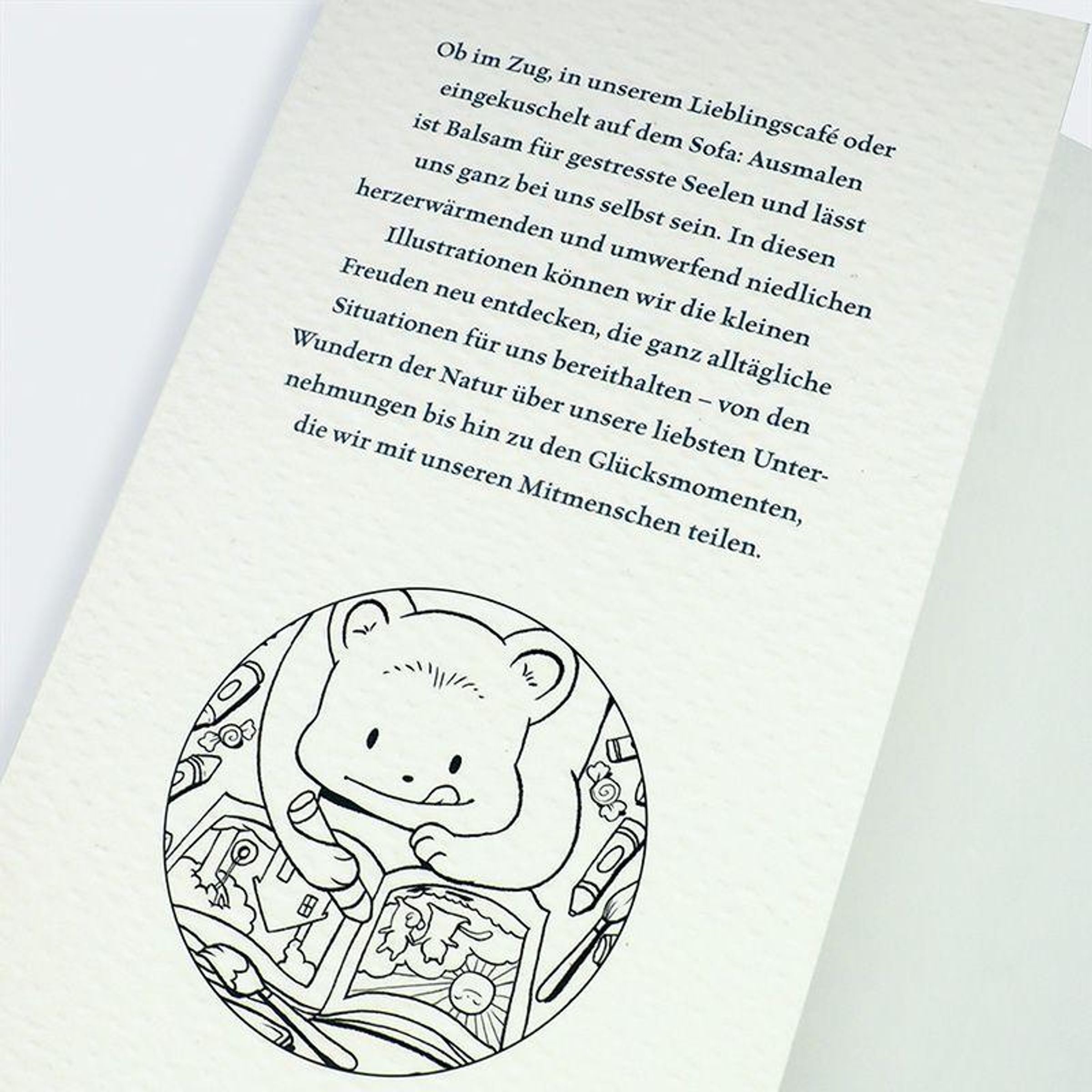 Wärmende Sonnenstrahlen auf unserer Haut, nach einem langen Tag ins frisch bezogene Bett schlüpfen oder mit den besten Freundinnen so richtig losprusten müssen: Unser Alltag ist voller kleiner Glücksmomente - wir müssen nur lernen, sie wieder wahrzunehmen. Die liebevollen Illustrationen zum Ausmalen lassen uns allen Stress vergessen und durch Kreativität neue Kraft schöpfen. Ob im Zug, in unserem Lieblingscafé oder eingekuschelt auf dem Sofa: Mit diesem Ausmalbuch und ein paar Stiften ist Entschleunigung garantiert.