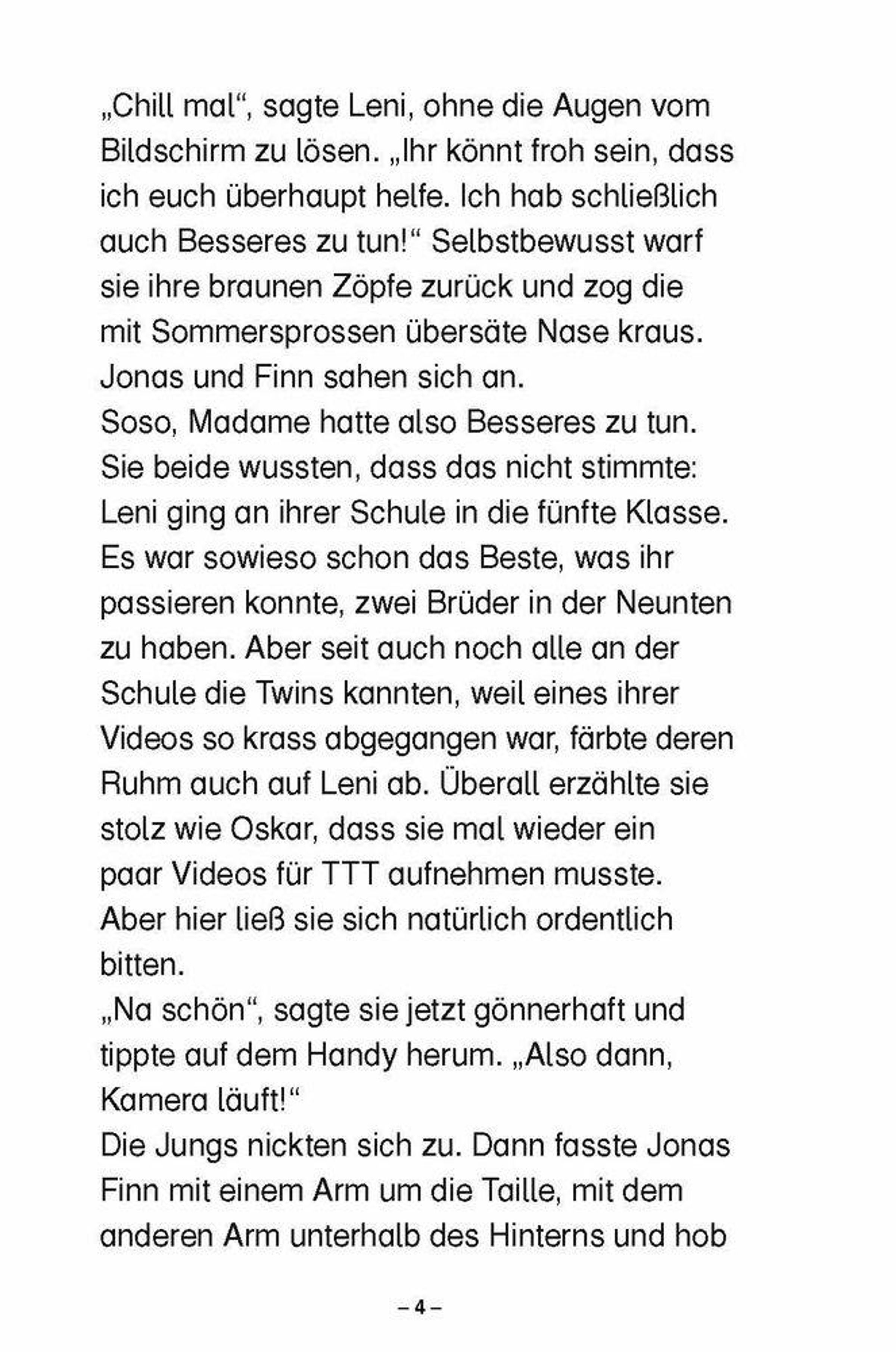 Jonas und Finn sind als "TikTok-Twins" mit ihren Videos mäßig erfolgreich. Das ändert sich, als Nora und Namika, die "TikTokTitans", sie zu immer neuen Aktionen herausfordern. Die Klickzahlen steigen, doch was am Anfang noch lustig und harmlos klingt und allenfalls für ein bisschen Bauchkribbeln sorgt, läuft schnell aus dem Ruder. Als Jonas nach einer besonders gewagten Aktion plötzlich verschwunden ist, müssen Finn, Nora und Namika endlich Verantwortung übernehmen ...