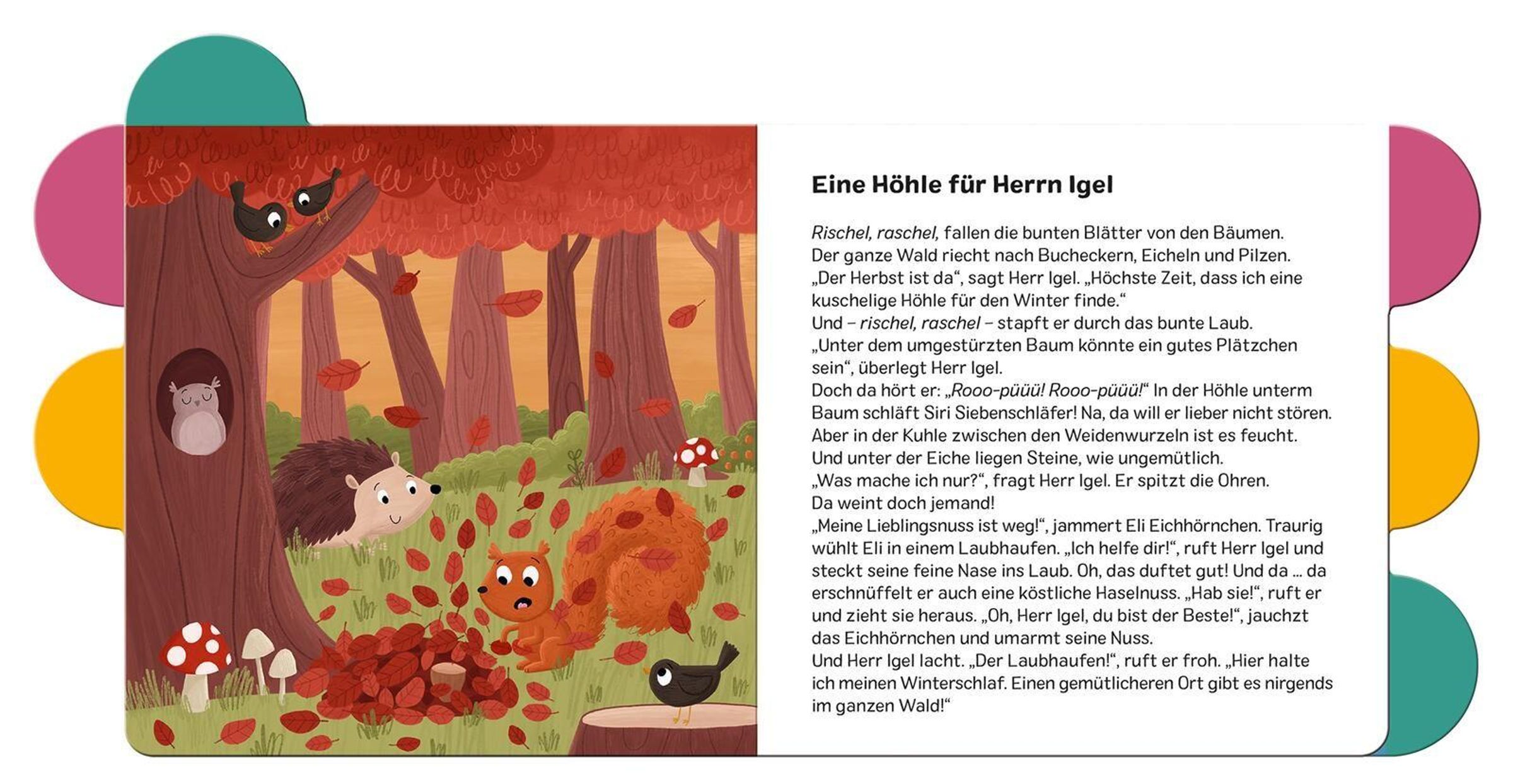 Im Wald bei den Tieren ist immer etwas los! Hase Holli braucht Hilfe beim Einschlafen, und Herr Igel hilft dem Eichhörnchen, seine Nuss zu suchen - dabei entdeckt er den perfekten Ort für den Winterschlaf. Und was erleben Waldfee Lilo und die 3 Spatzen?