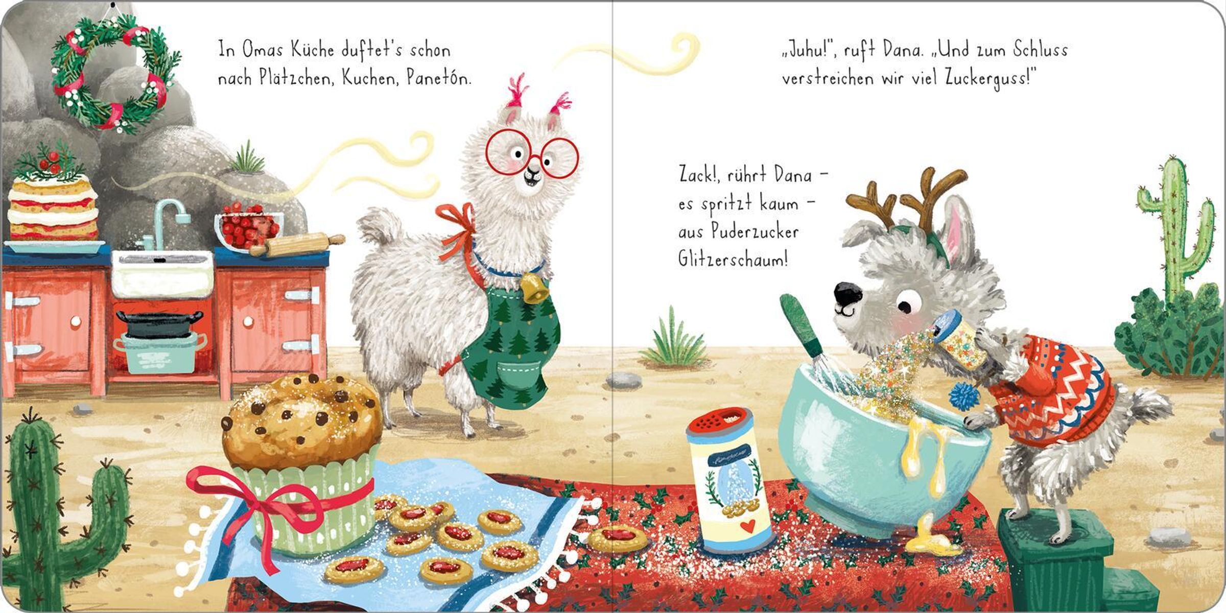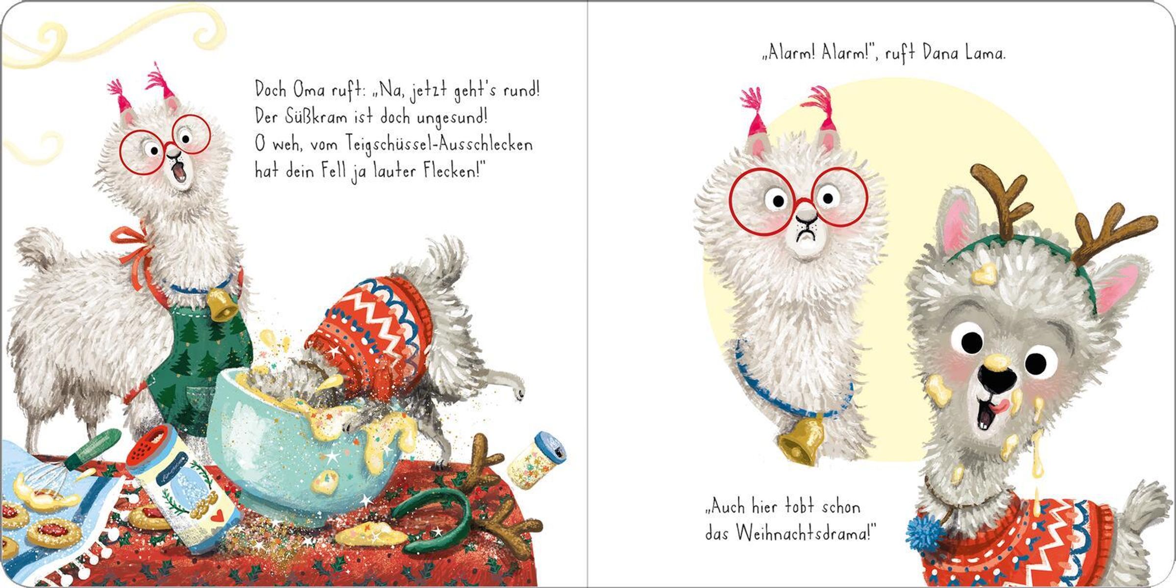 Weihnachten steht vor der Tür und das kleine Lama Dana ist schon ganz aufgeregt. Es hilft Papa Lama beim Weihnachtsbaumschmücken, assistiert Oma Lama tatkräftig in der Weihnachtsbäckerei und unterstützt Mama Lama lauthals beim Weihnachtskonzert. Doch während Dana Lama pure Weihnachtsvorfreude versprüht, tobt beim Rest der Familie das große Weihnachtsdrama: Papa kämpft mit der Lichterkette, Oma seufzt über die dreckige Küche und Mama möchte das Weihnachtsfest am liebsten ganz ausfallen lassen. Da spricht Dana ein Machtwort!