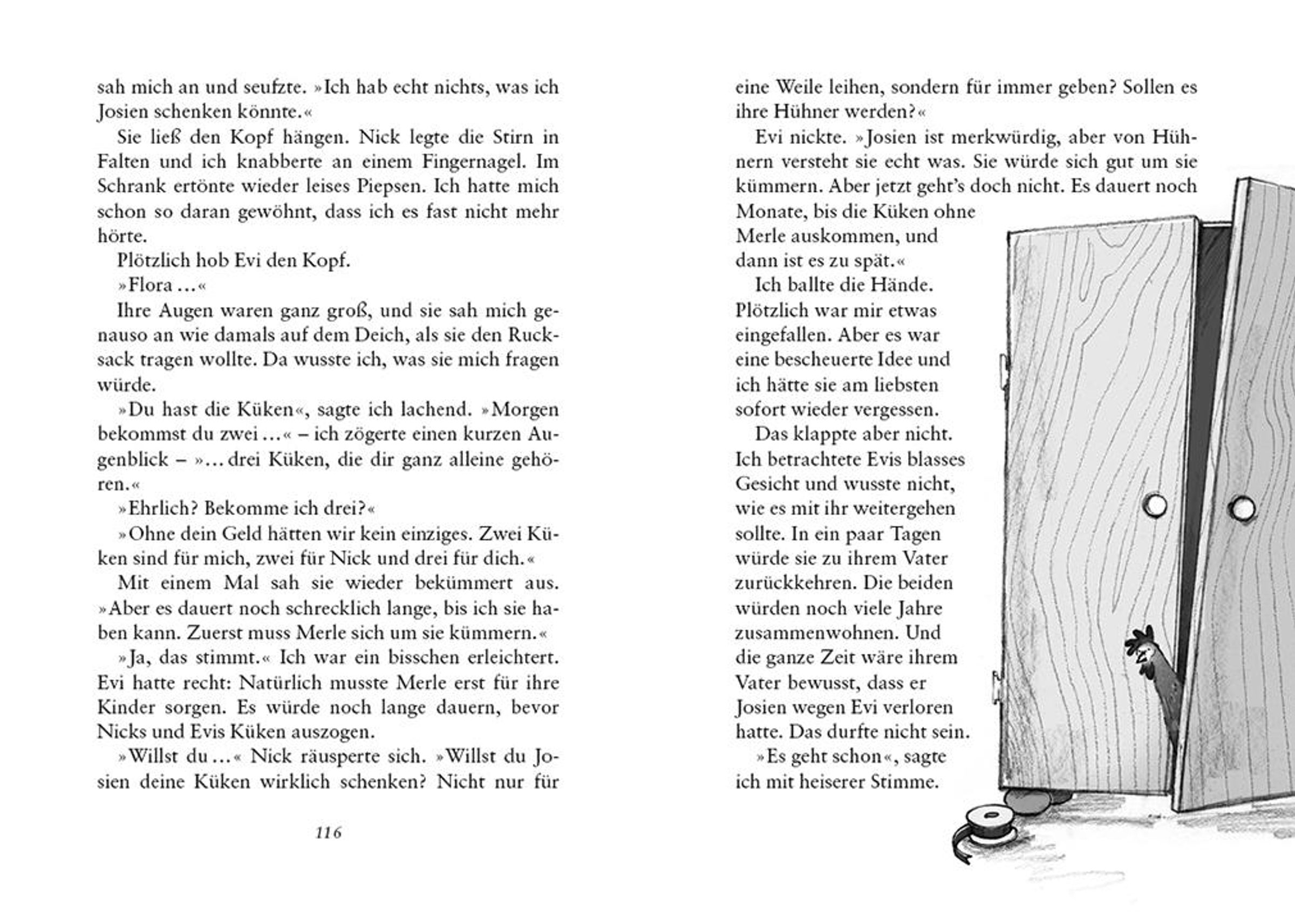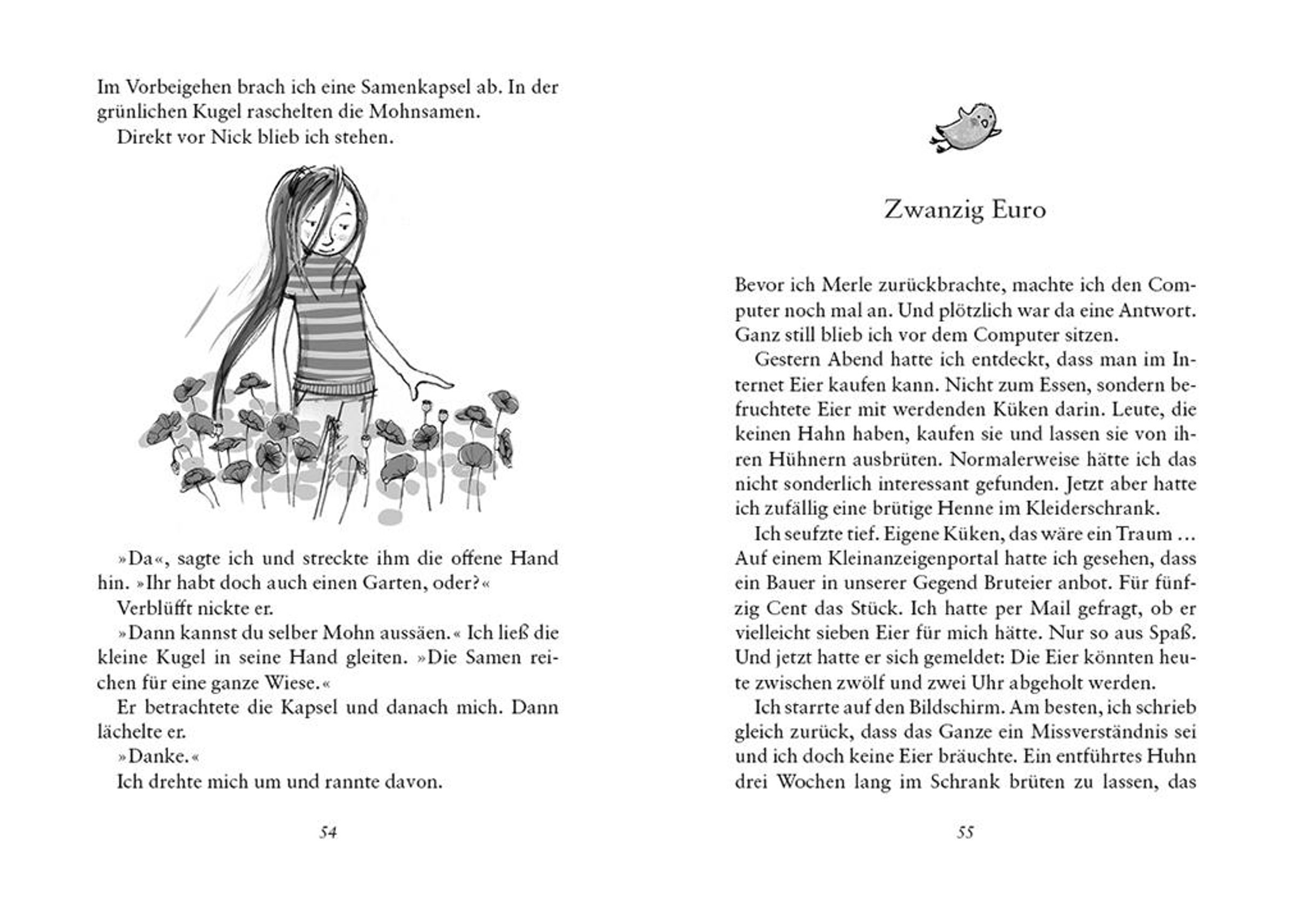Endlich Sommerferien! Die zehnjährige Flora freut sich auf die Zeit ohne Schule und ohne nervige Mitschüler. Und dann läuft ihr auch noch ein Huhn zu. Tiere liebt Flora über alles. Nur dumm, dass ausgerechnet die vorlaute Evi und der immer gut gelaunte Nick von der Sache Wind bekommen. Oder doch nicht so dumm? Ganz langsam stellt Flora fest, dass es sehr schön sein kann, mit menschlichen Freunden ein Geheimnis zu teilen.