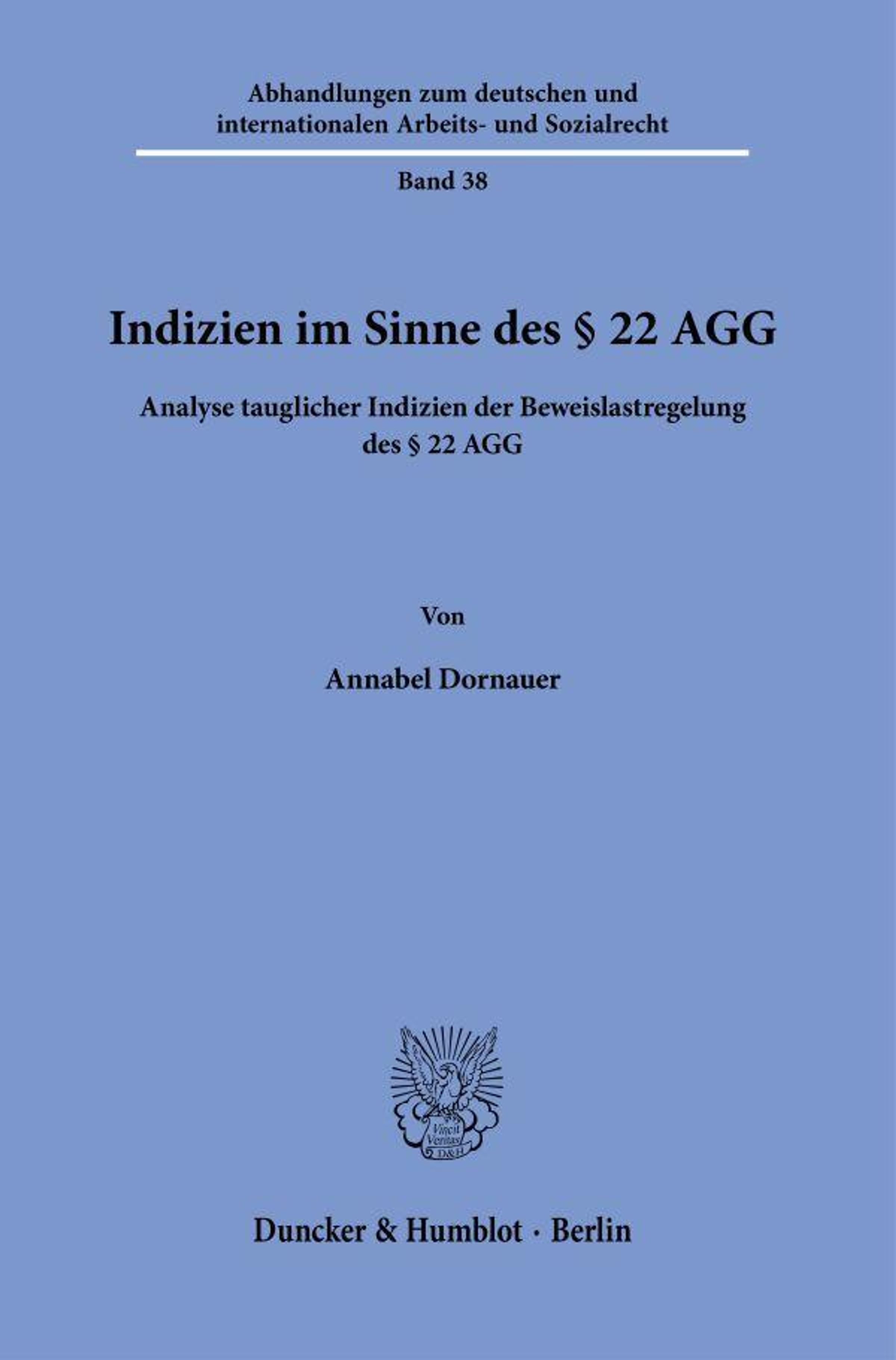 Buchtitel: "Indizien im Sinne des § 22 AGG". Autorin: Annabel Dornauer. Verlag: Duncker & Humblot, Berlin., Buch