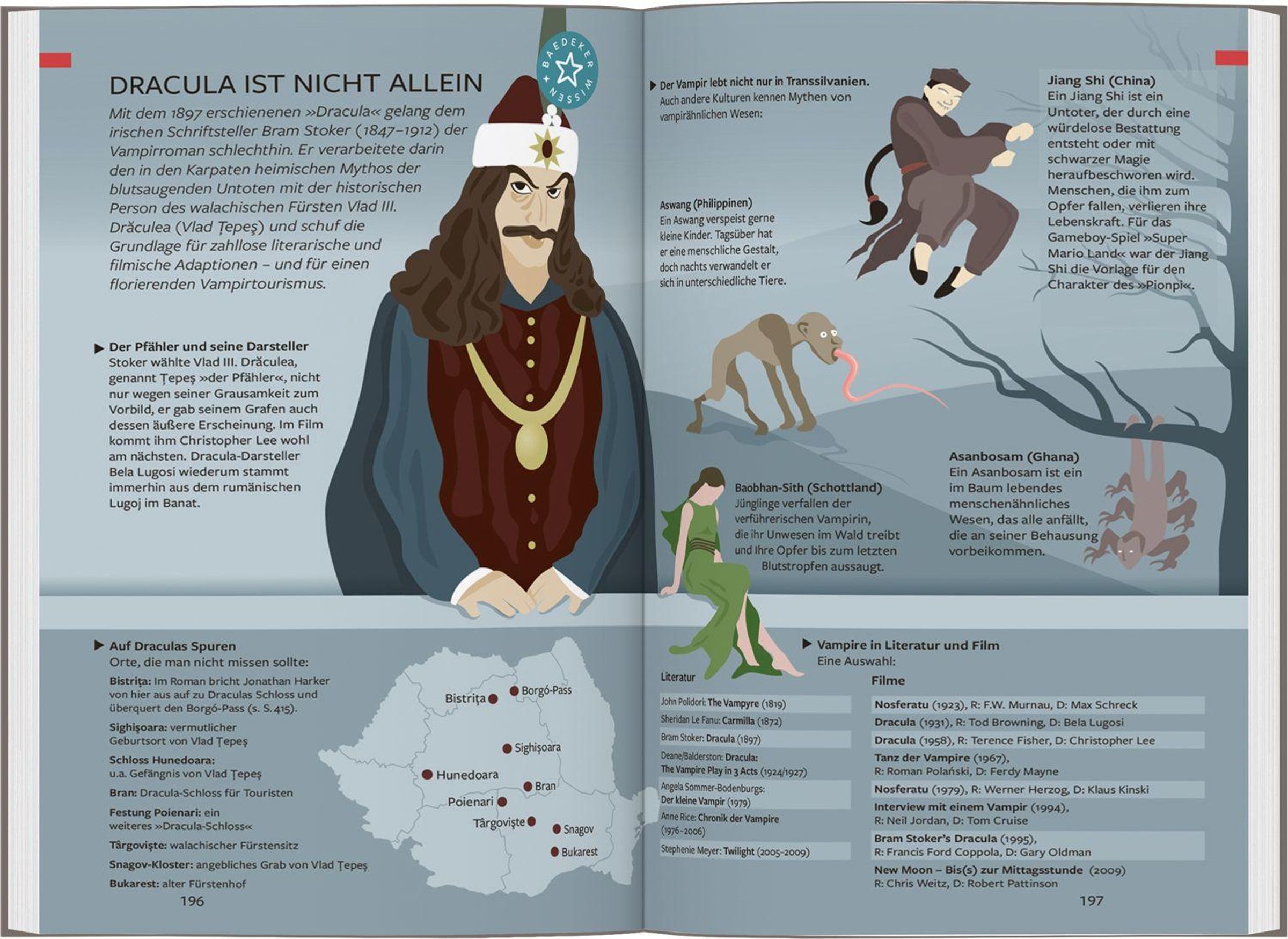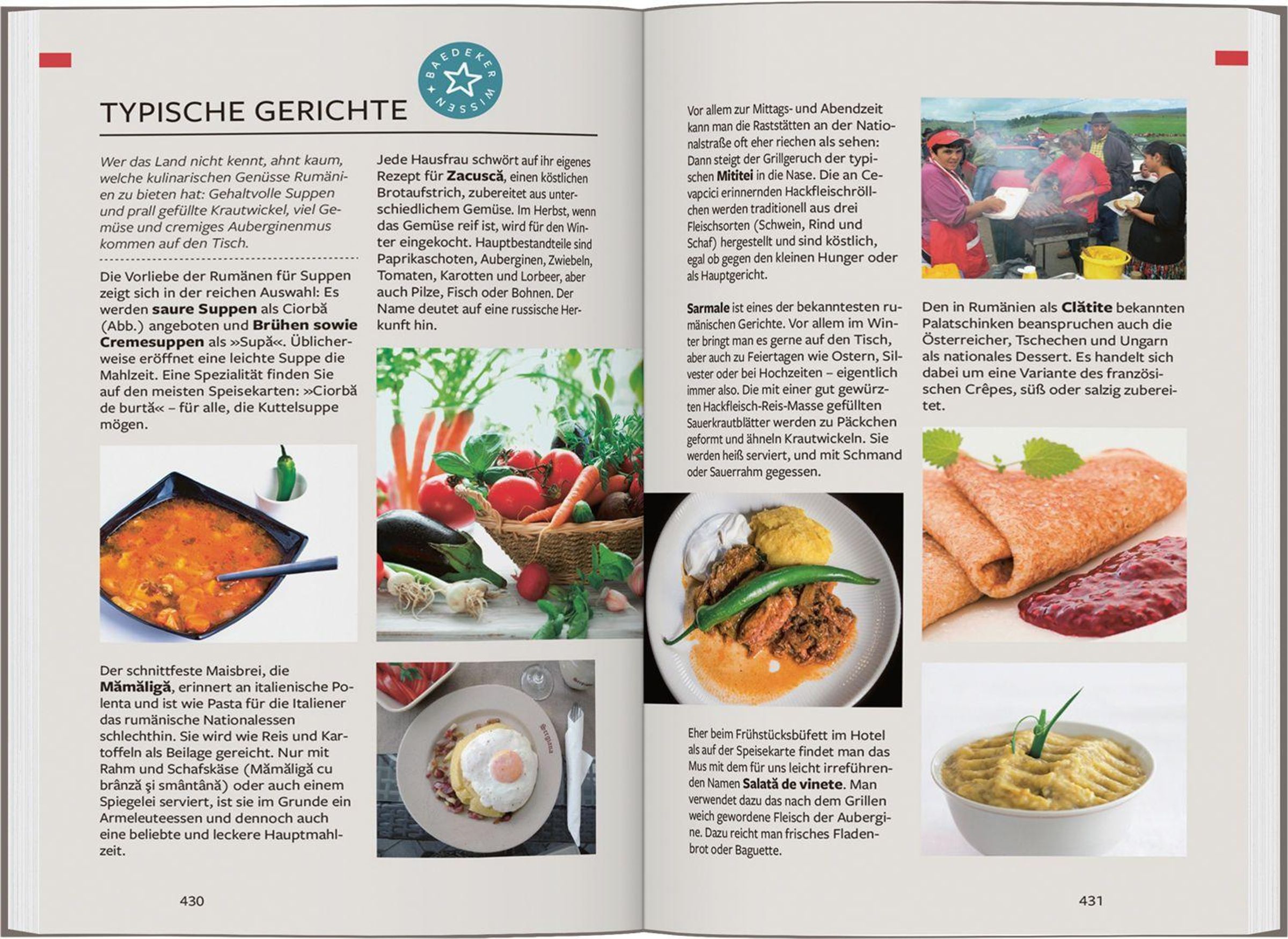 BAEDEKER, RUMÄNIEN. Illustration: Frau vor Ofen; Blumen und dekorierte Rahmen im Hintergrund., Buch