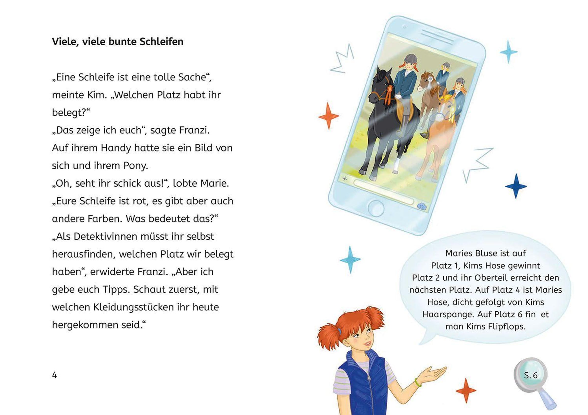 Kim, Franzi und Marie sind beste Freundinnen und Detektivinnen! Zusammen haben die drei !!! schon viele knifflige Fälle gelöst. Franzi ist überglücklich: Sie und ihr Pony Tinka haben beim Reitturnier eine Schleife gewonnen! Doch als Franzi ihren Freundinnen die Trophäe zeigen will, bekommt sie einen Schreck. Jemand hat die Vitrine verwüstet, in der alle Preise aufbewahrt werden. Außerdem ist ein Pokal verschwunden. Ein neuer Fall für die drei !!!. Lesen lernen ist schwer? Nicht mit dieser spannenden Geschichte, die auch Leseanfängerinnen ab Klassenstufe 2 leicht bewältigen können. Illustrationen und ein Detektiv-Rätsel auf jeder Doppelseite machen den Band abwechslungsreich, sorgen für Erfolgserlebnisse und erhöhen die Lese-Motivation. So macht der Einstieg ins selbstständige Bücherlesen einfach Spaß.