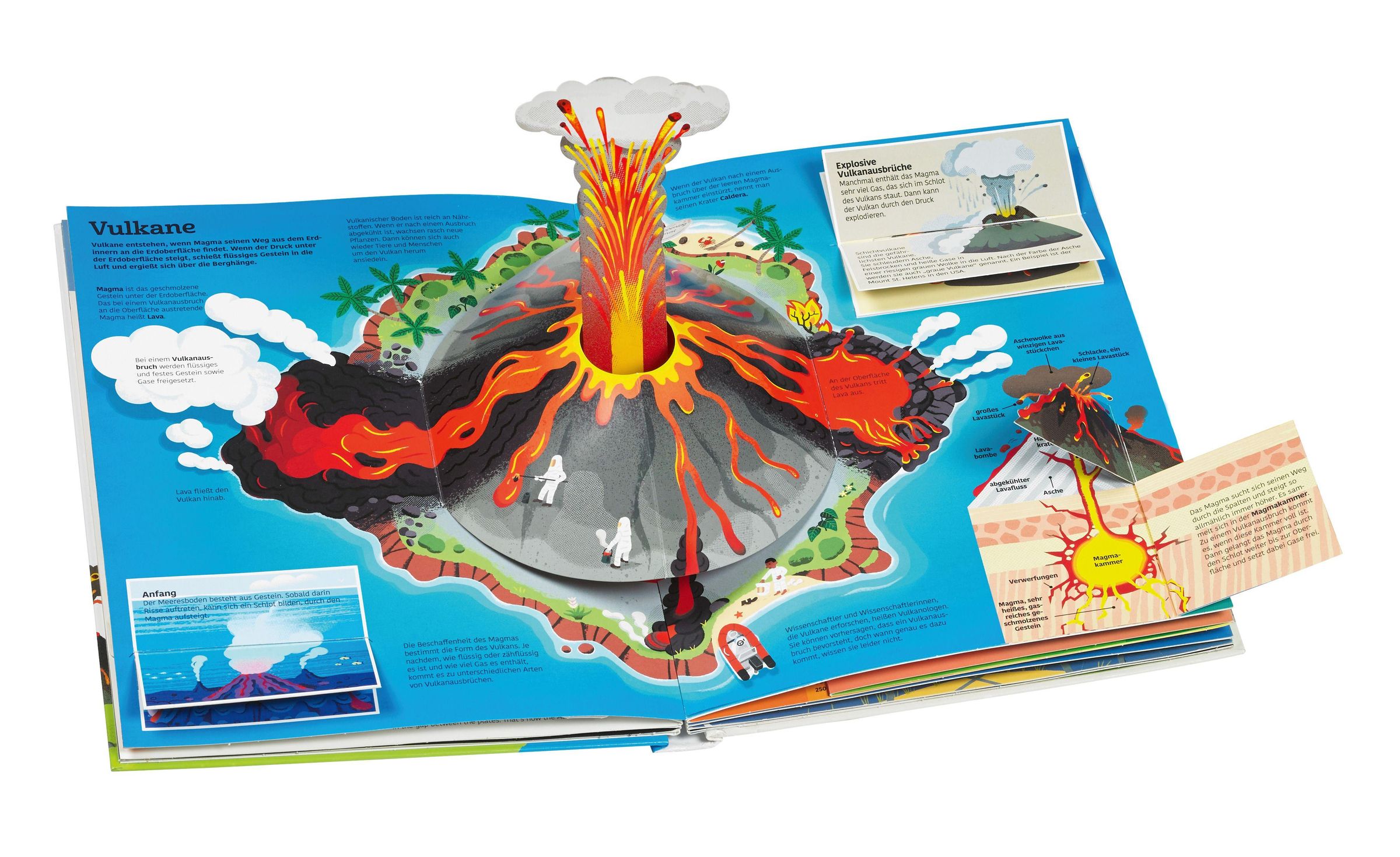 Beim Zug an einer Lasche entfaltet sich ein Gebirgszug, beim Umblättern schießt Magma aus einem Vulkan und beim Drehen eines Rades bewegen sich die Rotorblätter einer Windkraftanlage! Schieben, ziehen, klappen, entdecken: Die vielen beweglichen Teile, detailreichen Illustrationen und sorgfältig recherchierten Informationen vermitteln ein spannendes Bild unseres Planeten.