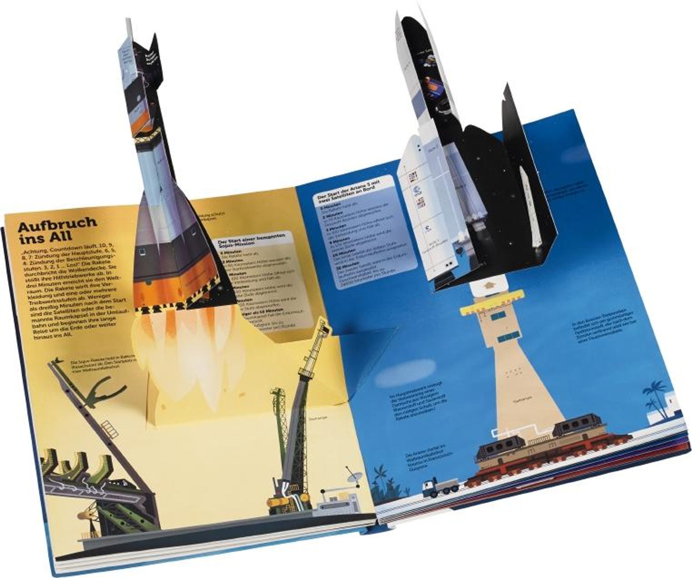 Was ist eine Supernova? Wie trainieren Astronauten für ihre Mission im All? Wozu tragen sie einen Raumanzug? Welche Raketen gibt es und wie funktionieren sie? Dieses Buch im Riesenformat nimmt Kinder mit auf Entdeckungsreise durch die unendlichen Weiten des Alls. Die kleinen Weltraumforscher dürfen Astronaut auf der Internationalen Raumstation werden, einem Raketenstart zusehen, auf Mond und Mars landen, die Erde aus dem All betrachten und die Planeten unseres Sonnensystems kennenlernen. 40 Klapp- und Spielelemente geben dabei verblüffende Einblicke in die Weltraumfahrt.