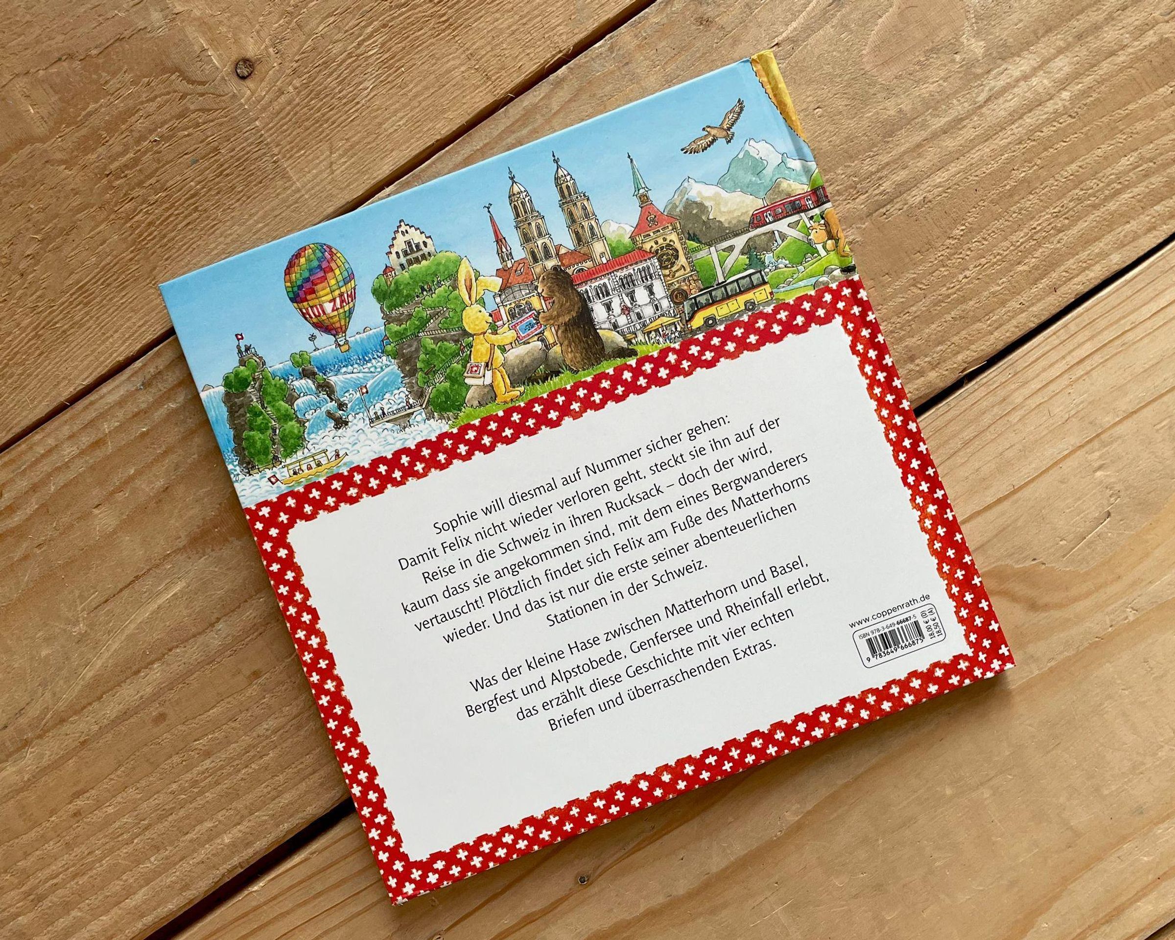 Was der kleine Hase zwischen Matterhorn und Basel, Bergfest und Alpstobede, Genfersee und Rheinfall erlebt, das erzählt diese Geschichte mit vier echten Briefen und überraschenden Extras.